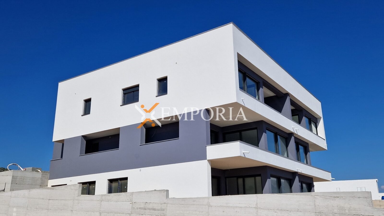 Insgesamt 6 Wohneinheiten im Gebäude. Es besteht aus Untergeschoss, Erdgeschoss und Obergeschoss, in dem sich zwei Penthouse-Wohnungen befinden. Das Grundstück, auf dem sich das Gebäude befindet, ist erhöht.