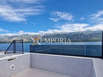 Zum Verkauf steht eine schöne Penthouse-Wohnung mit Dachterrasse und Swimmingpool in der ersten Reihe zum Meer in Vinjerac. Der Ausblick auf das Meer und Velebit – Gebirge ist einzigartig.