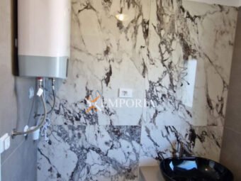 Konstruktion mit Betonwänden. Wärmedämmung der Fassade 10 cm Styropor. Bodenbeläge sind Fliesen und Parkett. PVC-Fenster mit elektrischen Rollläden und Moskitonetzen. Glaswände sind aus Aluminium. Elektrische Fußbodenheizung im Badezimmer. Darüber hinaus gibt es 4 Klimaanlagen in der Wohnung. Die Klimageräte befinden sich im Wohnzimmer und jedem Schlafzimmer. Eingangstür ist einbruchsicher und feuerfest.