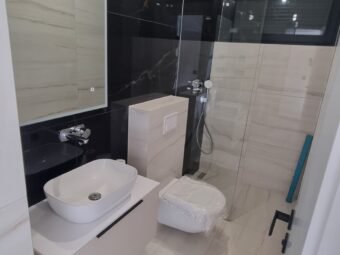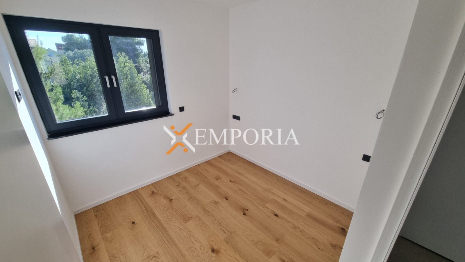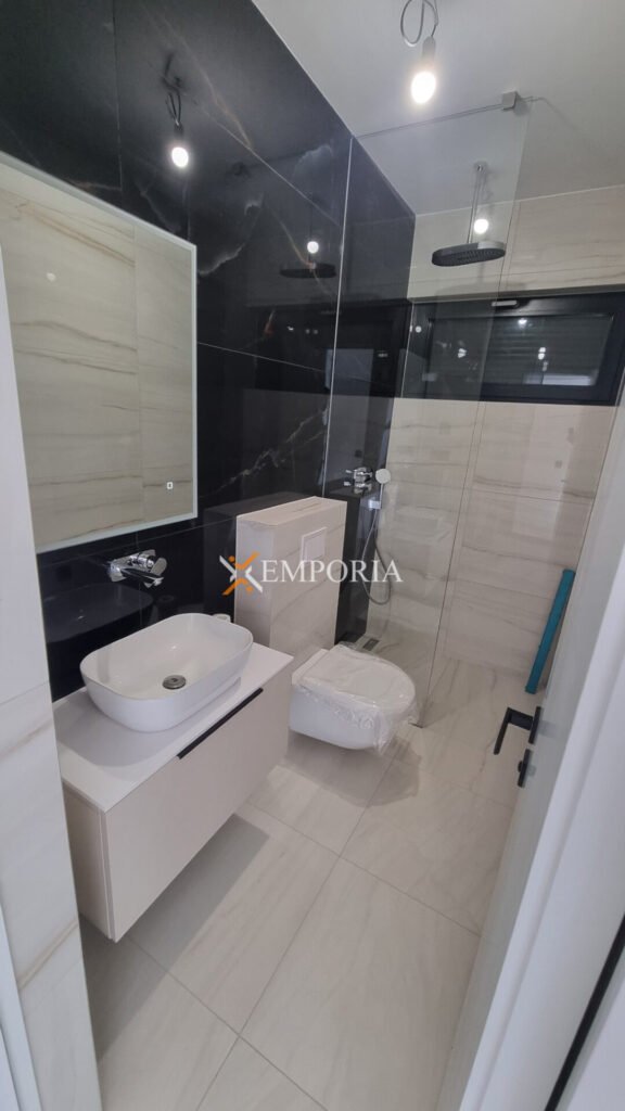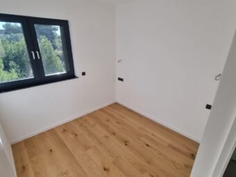 Konstruktion mit gemauerten Thermoblöcken. Fassadenwärmedämmung 10 cm Styropor. Bodenbeläge sind Fliesen und Parkett. Aluminiumfenster mit dreischichtigem Glas, Moskitonetzen und elektrischen Rollläden und Jalousien. Klimaanlagen befinden sich im Wohnzimmer und in jedem Schlafzimmer. Zusätzlich elektrische Fußbodenheizung im Badezimmer. Darüber hinaus ist die Eingangstür einbruchsicher und feuerfest. Zu dieser Wohnung gehört eine Außendusche im Hof.