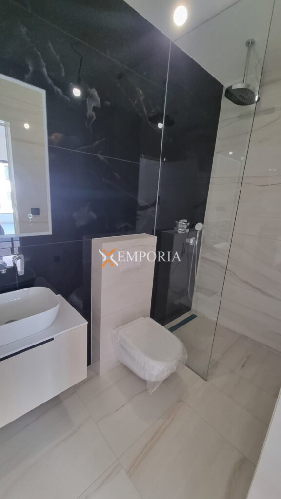 Dies ist eine Wohnung im 1. Stock. Raumaufteilung besteht aus Flur, Schlafzimmer, Schlafzimmer mit Bad, Badezimmer, Küche mit Ess- und Wohnzimmer sowie einer Loggia. Nettonutzfläche der beschriebenen Räumlichkeiten mit Terrasse beträgt 66,88 m2. Darüber hinaus verfügt die Wohnung über zwei Parkplätze.
