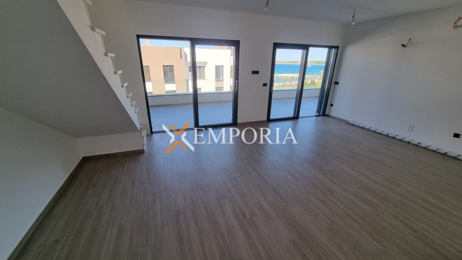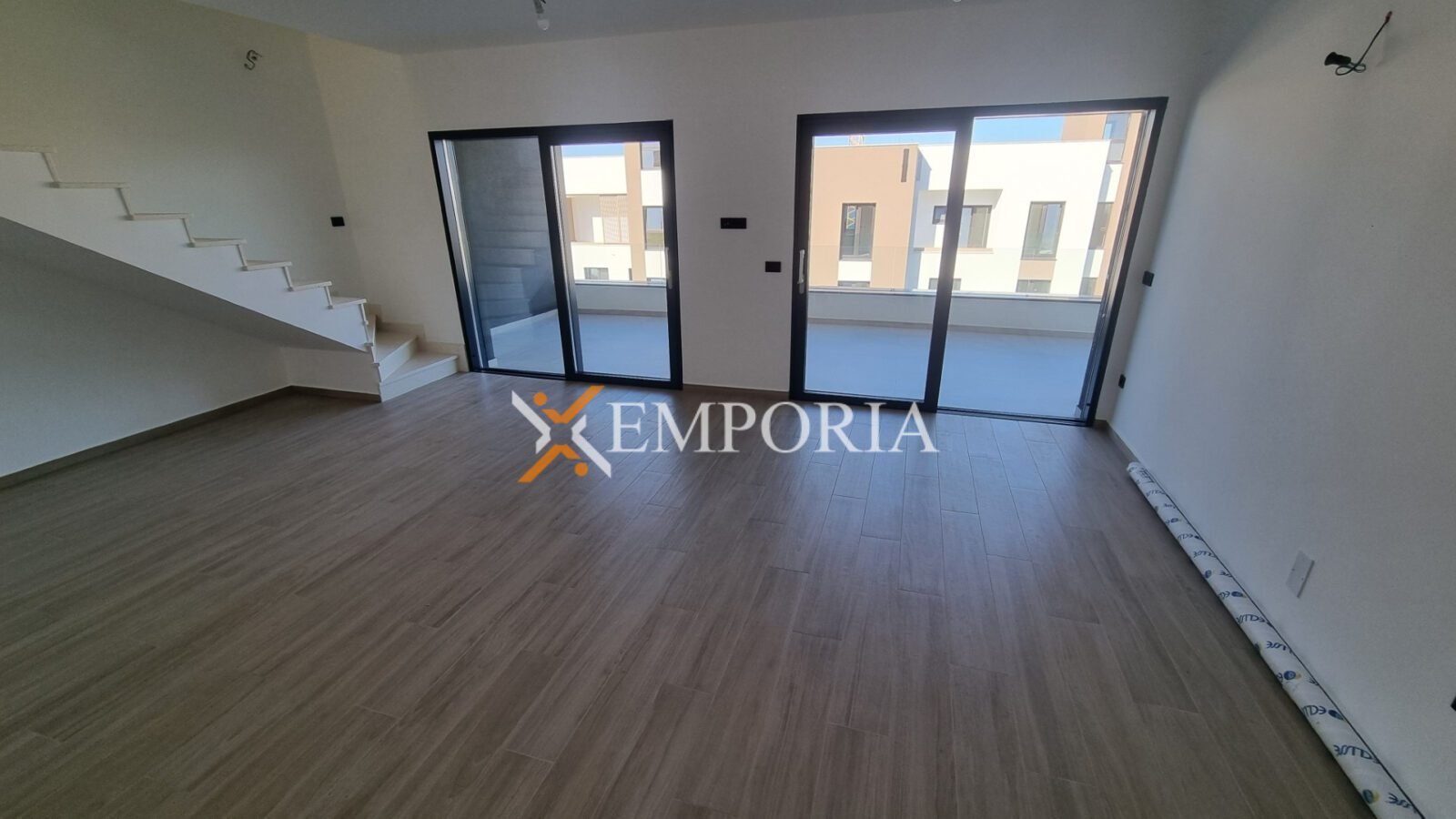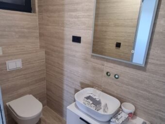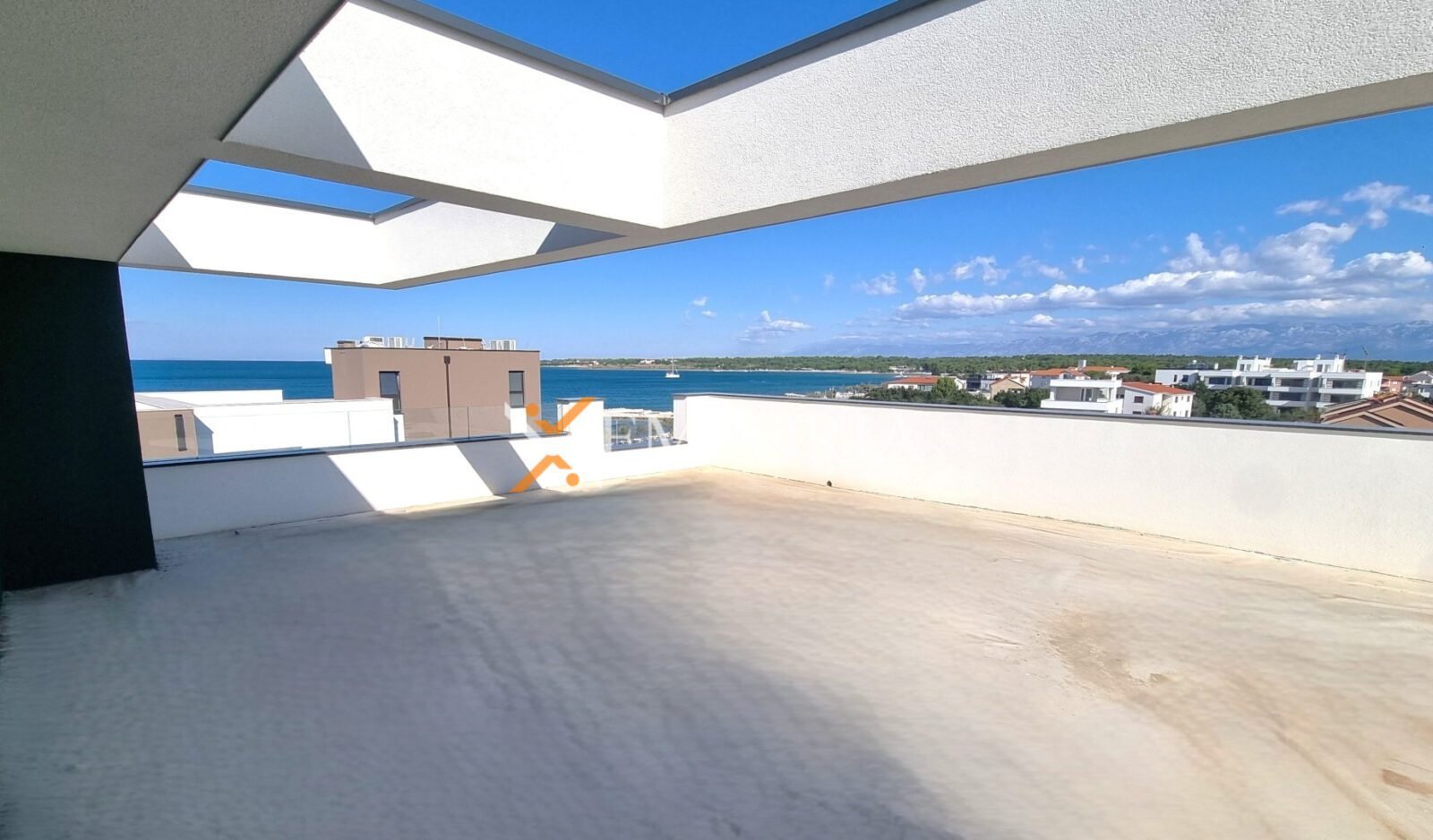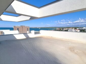 Dies ist eine Wohnung im zweiten Stock. Raumaufteilung besteht aus einem Flur, 2 Schlafzimmer, Schlafzimmer mit Bad, Badezimmer, Küche mit Ess- und Wohnzimmer sowie einer überdachten Terrasse. Aus der Wohnung gelangt man auf die zu dieser Wohnung gehörende Dachterrasse. Die Fläche der Dachterrasse beträgt 102,32 m2. Auf der Dachterrasse befindet sich ein 15,30 m2 großer Swimmingpool. Nettonutzfläche der beschriebenen Räume mit Terrassen beträgt 130,05 m2. Außerdem verfügt die Wohnung über zwei Parkplätze.