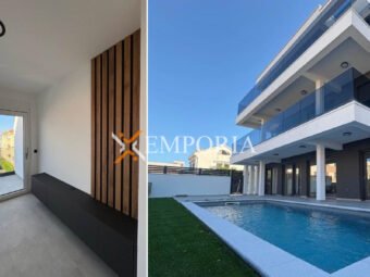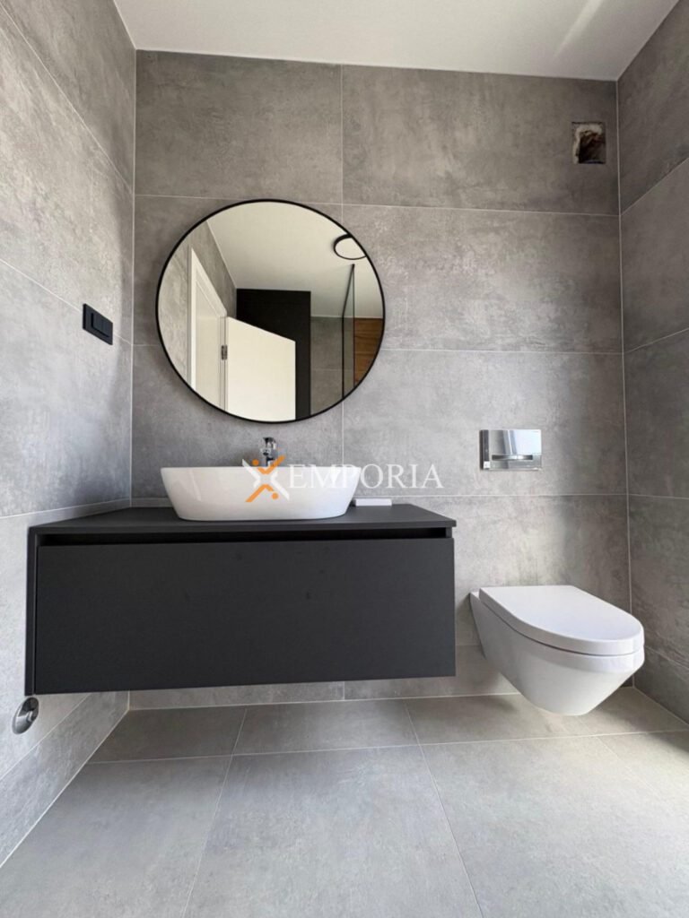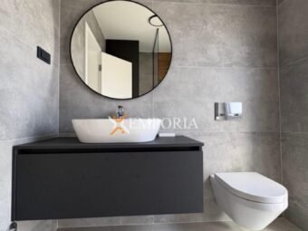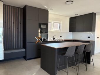 Konstruktion mit gemauerten Thermoblöcken. Fassadenwärmedämmung 10 cm Styropor. Die Bodenbeläge sind Fliesen und Laminat. PVC-Fenster mit elektrischen Rollläden und Moskitonetzen. Es gibt 4 Klimaanlagen in der Wohnung. Eine Klimaanlage befindet sich im Wohnzimmer und die anderen drei in den Schlafzimmern. Fußbodenheizung überall außer in den Schlafzimmern. Außerdem ist die Eingangstür einbruchsicher und feuerfest.