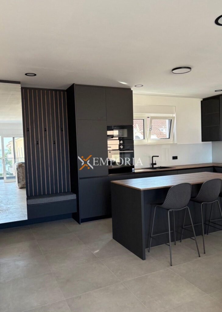 Penthouse Apartment zum Verkauf im zweiten Stock. Es handelt sich um einen Neubau. Das Gebäude befindet sich in zweiter Reihe zum Meer. Das Apartment hat einen wunderbaren Meerblick. Die Raumaufteilung besteht aus einem Flur, 2 Schlafzimmern, 2 Badezimmer, einer Küche mit Ess- und Wohnzimmer sowie einer großzügigen Terrasse. Zusätzlich verfügt die Wohnung über eine Dachterrasse. Nettonutzfläche der beschriebenen Räumlichkeiten beträgt 119,66 m2.