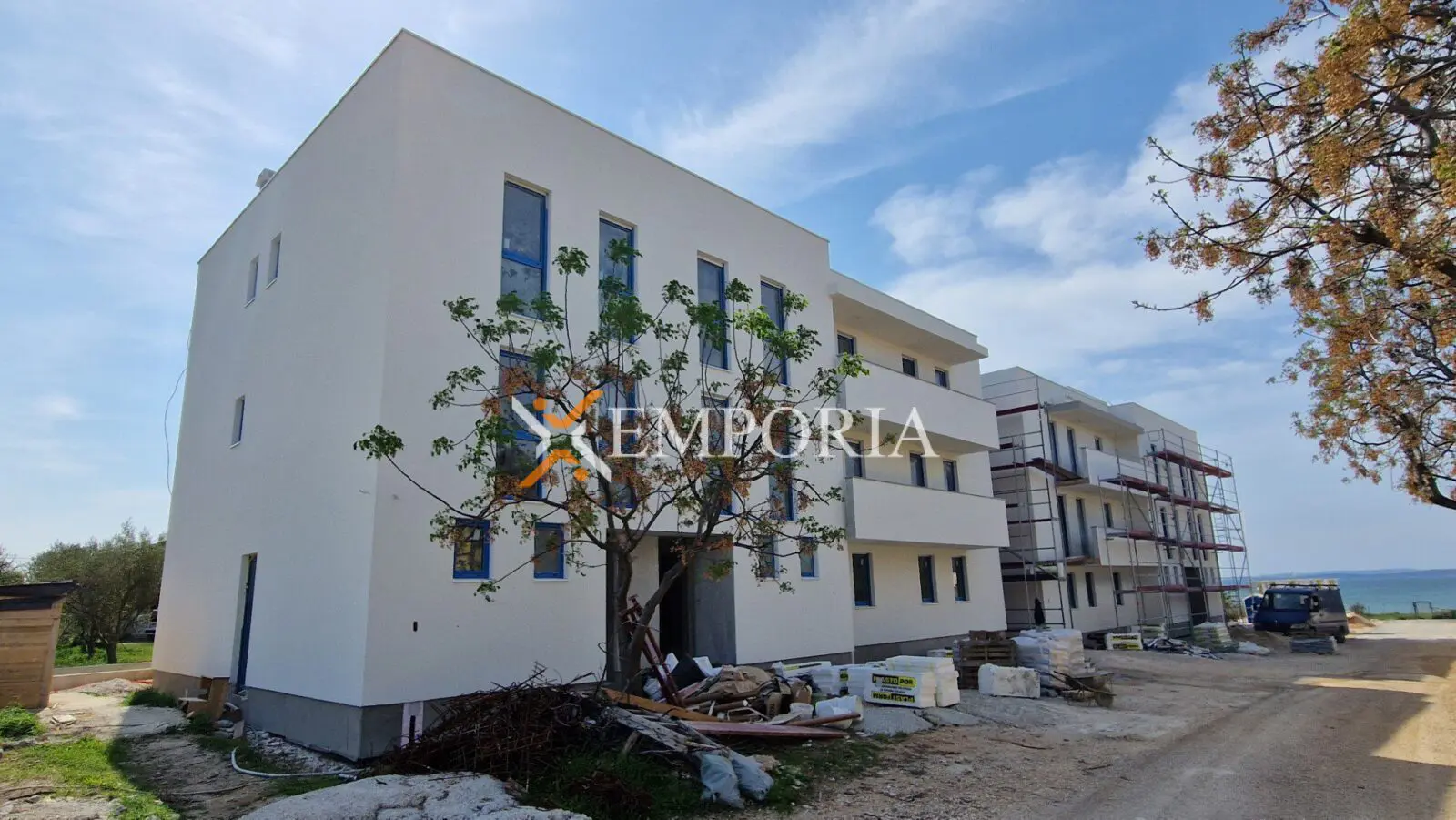 Mehrstöckige Wohnung mit Meerblick zum Verkauf in Privlaka. Diese besteht aus Erdgeschoss, 1. Stock, 2. Stock und Dachterrasse. Diese Art von Wohnung kann mit einem Reihenhaus verglichen werden. Es ist nur 65 m vom Meer entfernt.