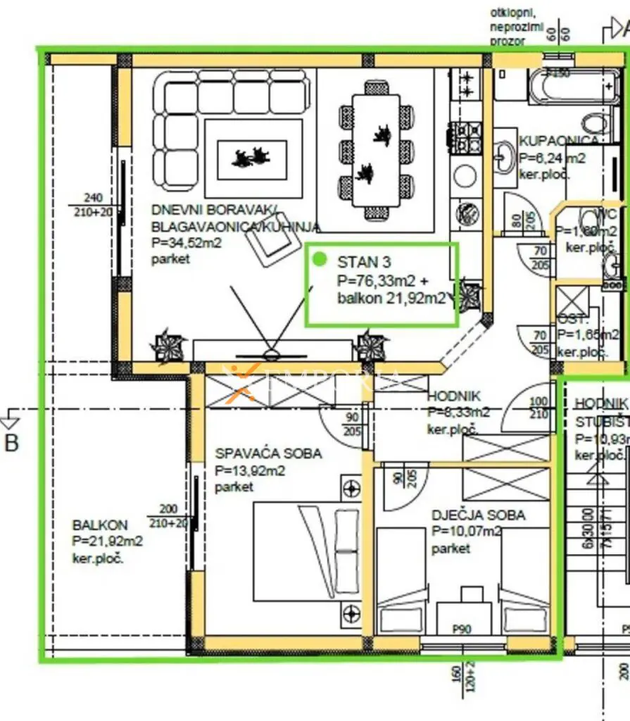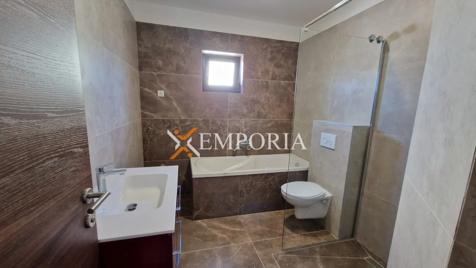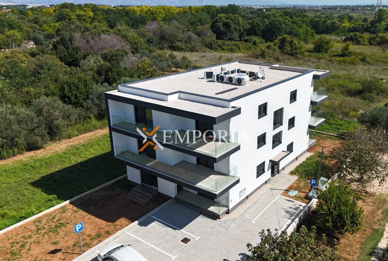 Eine wunderschöne Wohnung zum Verkauf in einem neuen Gebäude in Privlaka. Es handelt sich um eine Wohnung im 1. Stock. Die Raumaufteilung besteht aus einem Flur, zwei Schlafzimmern, einem Badezimmer, einer Toilette, einer Speisekammer, einer Küche mit Esszimmer und einem Wohnzimmer sowie einer überdachten Terrasse. Die Nettonutzfläche der Wohnung beträgt 94,21 m2. Darüber hinaus verfügt die Wohnung auch über einen Parkplatz.