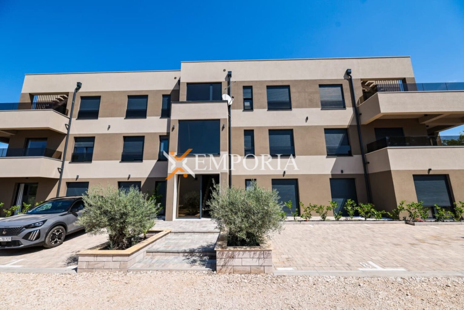 Es handelt sich um eine Wohnung im zweiten Stock. Diese Wohnung befindet sich in einem Gebäude mit insgesamt 8 Wohneinheiten. Es handelt sich um einen modernen Neubau.