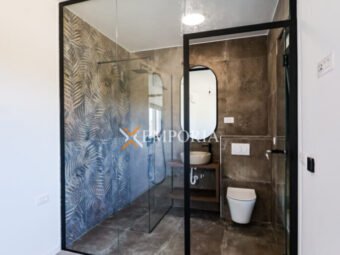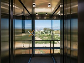 Bau des Gebäudes mit gemauertem Thermoblock und Wärmedämmung der Fassade 10 cm Styropor. Die Bodenbeläge sind Fliesen. Die Fenster sind aus Aluminium mit Dreischichtglas, elektrischen Rollläden und Moskitonetzen. In jedem Schlafzimmer und im Wohnzimmer gibt es eine Klimaanlage. Zusätzlich gibt es eine elektrische Fußbodenheizung im Badezimmer. Darüber hinaus ist die Eingangstür der Wohnung einbruchsicher und feuersicher.