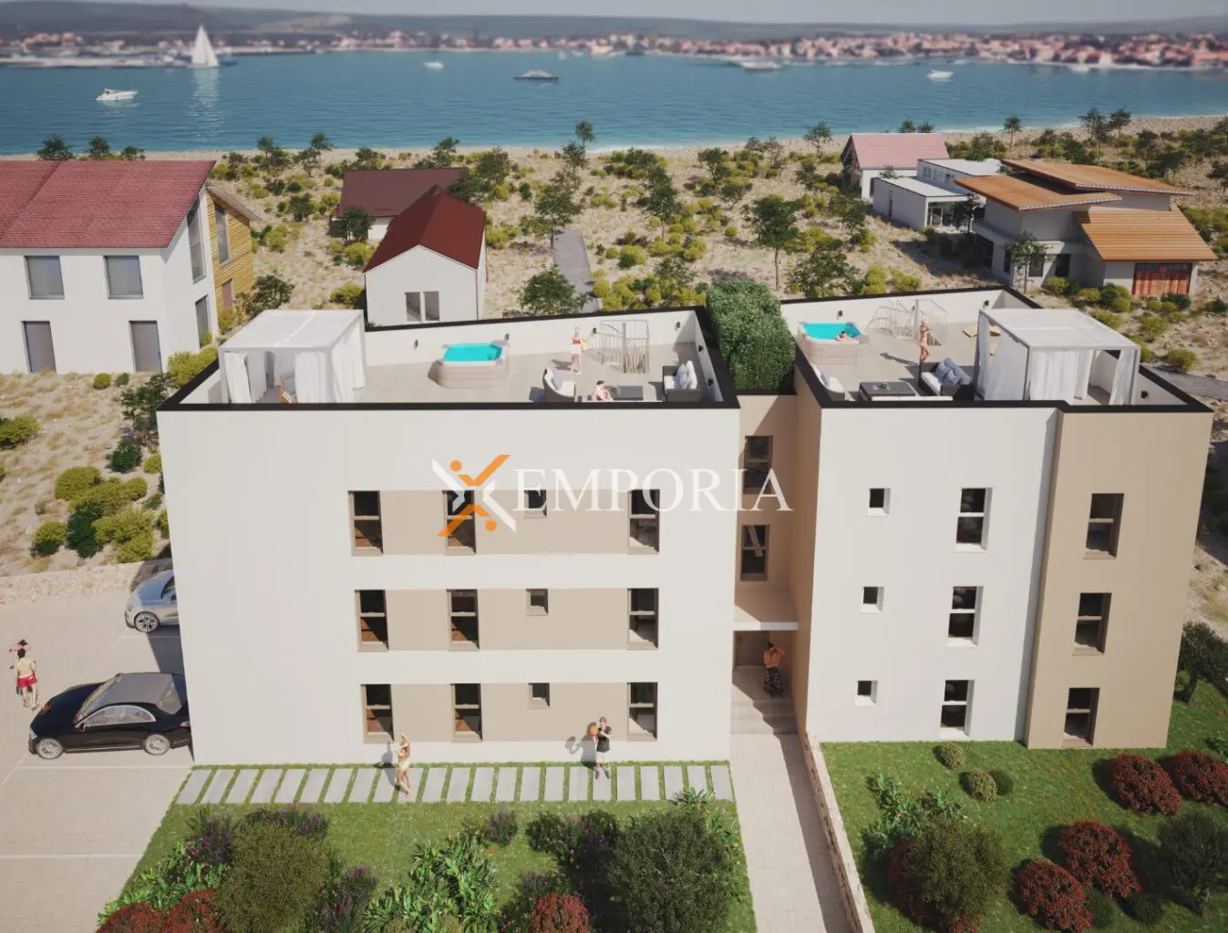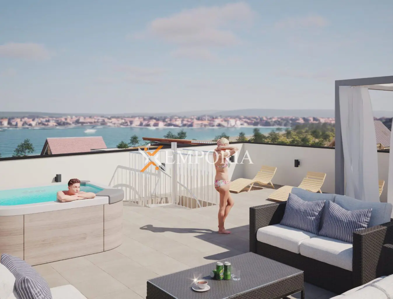 Eine wunderschöne Penthouse-Wohnung zum Verkauf, nur 70 m vom Meer entfernt in Sukošan. Es handelt sich um einen Neubau. Die Wohnung bietet einen wunderschönen Blick auf das Meer.