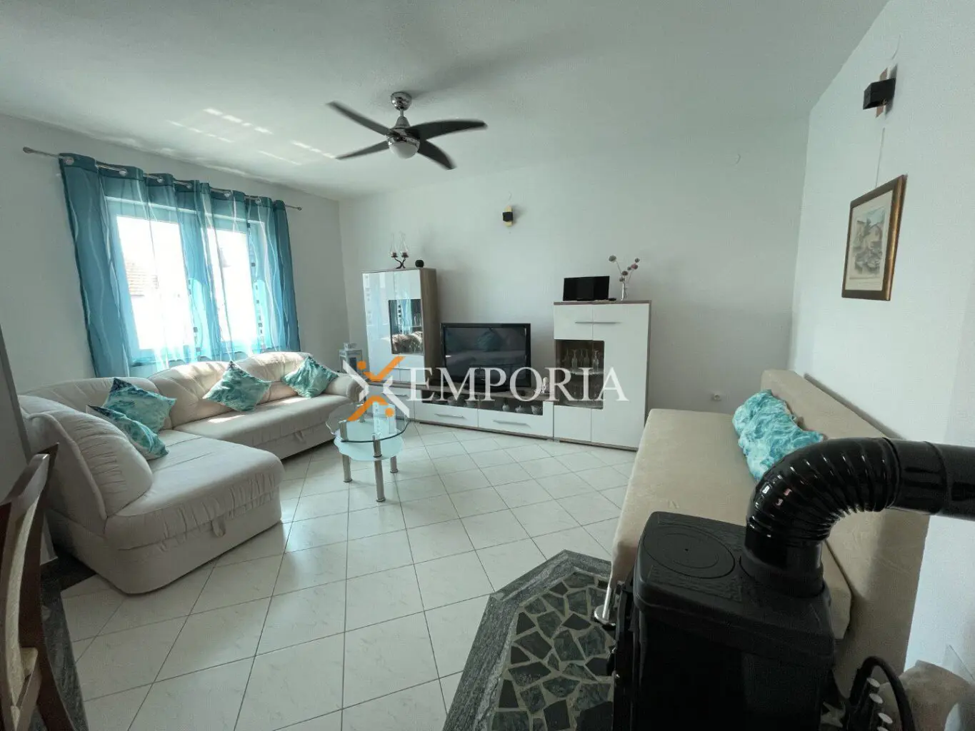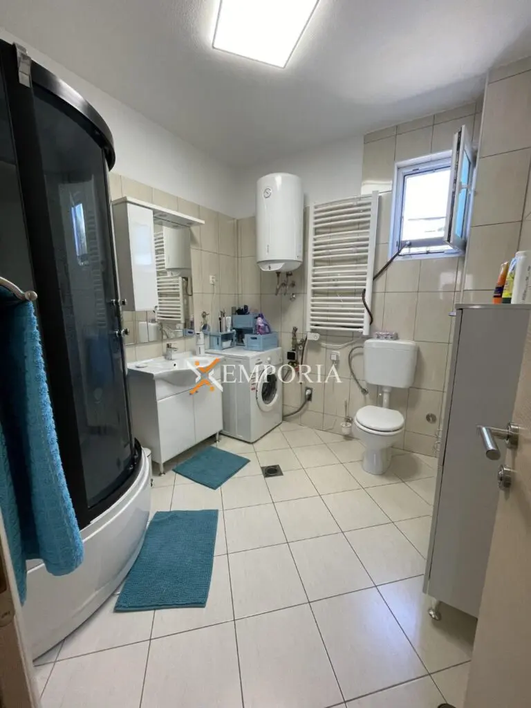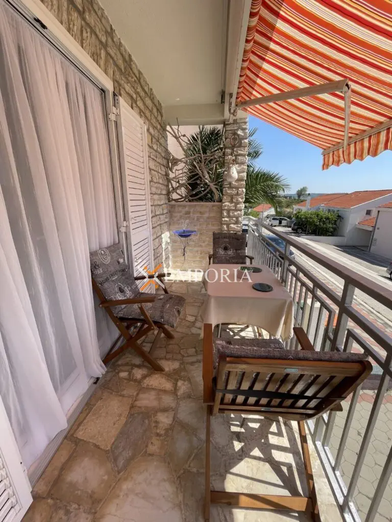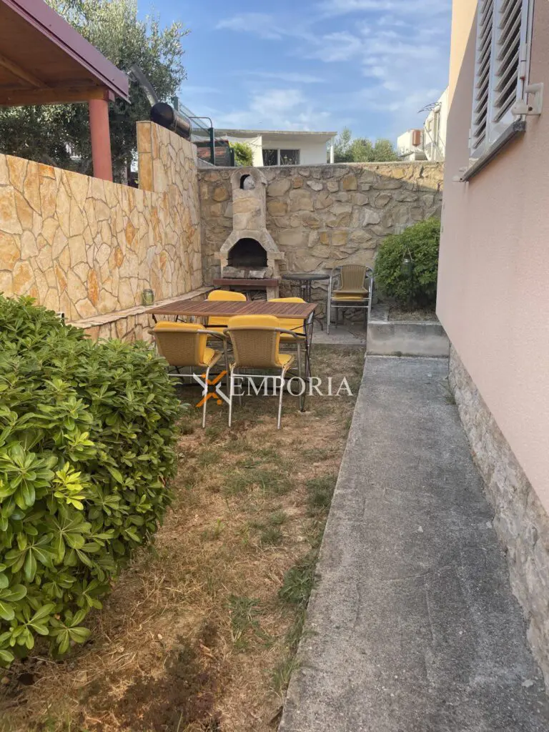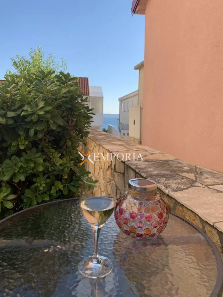 Zum Verkauf steht eine komplett möblierte Wohnung im oberen Erdgeschoss eines kleineren Wohngebäudes. Diese befindet sich in Rtina, in toller Lage, nahe dem Meer und dem Strand.