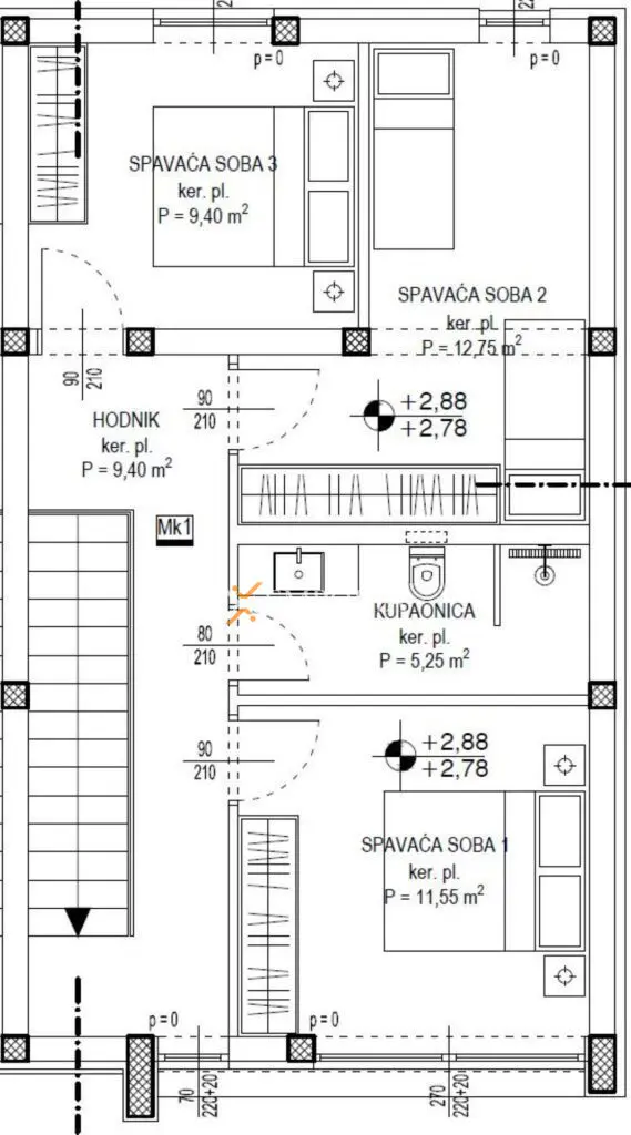 Das Gebäude wurde mit Ziegel-Thermoblöcken gebaut. Die Wärmedämmung der Fassade besteht aus 10 cm dickem Styropor. Die Fenster sind aus PVC-Material mit Dreifachverglasung, Rollläden und Moskitonetzen. Die Bodenbeläge bestehen aus Fliesen und Laminat. Die Wohnung hat im gesamten Bereich eine elektrische Fußbodenheizung. Darüber hinaus werden Klimaanlagen im Wohnzimmer und in den Schlafzimmern installiert.