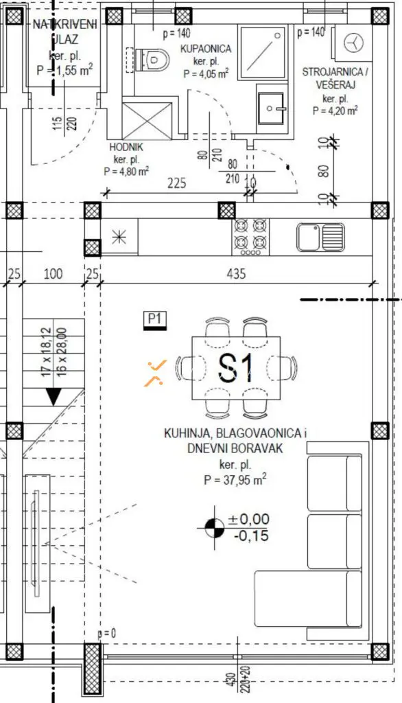 Die Entfernung von der Immobilie zum Meer und zum Zentrum von Privlaka beträgt 300 m.