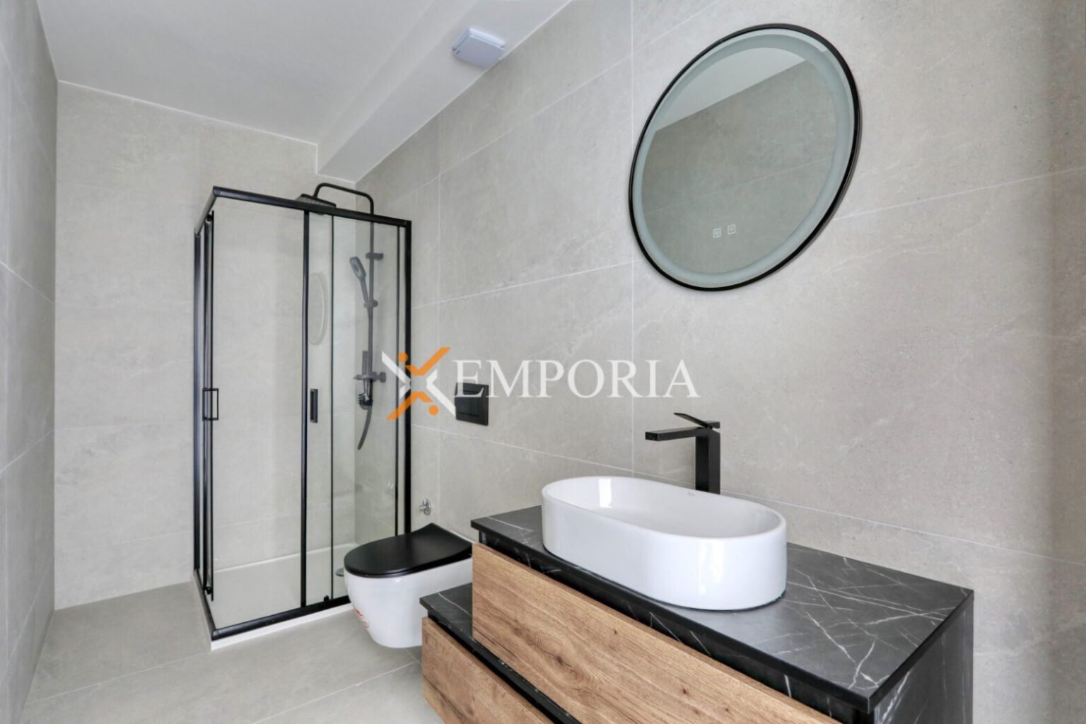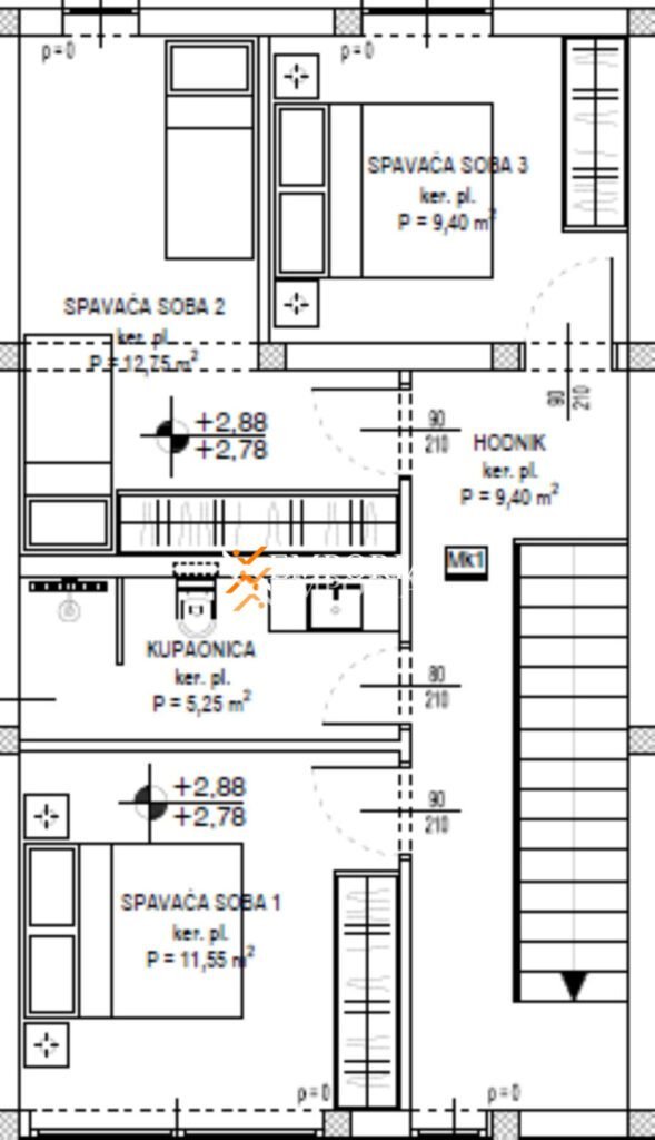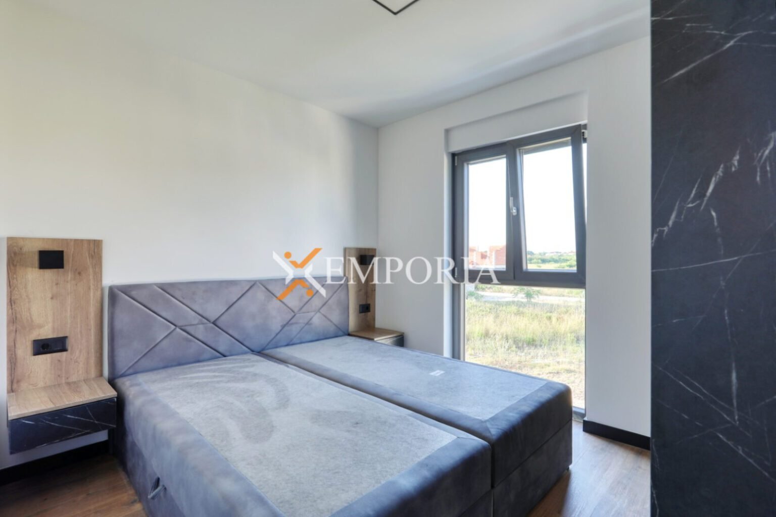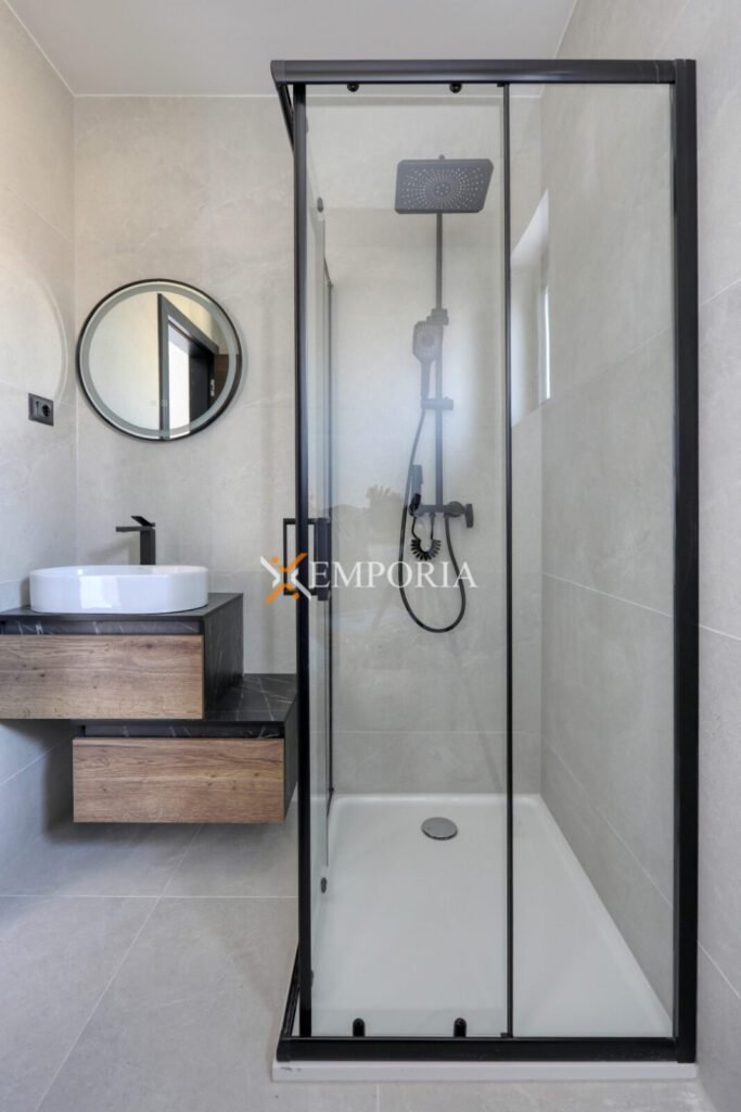 Das Gebäude wurde mit Ziegel-Thermoblöcken gebaut. Die Wärmedämmung der Fassade besteht aus 10 cm dickem Styropor. Die Fenster sind aus PVC-Material mit Dreifachverglasung, Rollläden und Moskitonetzen. Die Bodenbeläge bestehen aus Fliesen und Laminat. Die Wohnung hat im gesamten Bereich eine elektrische Fußbodenheizung. Darüber hinaus werden Klimaanlagen im Wohnzimmer und in den Schlafzimmern installiert.
