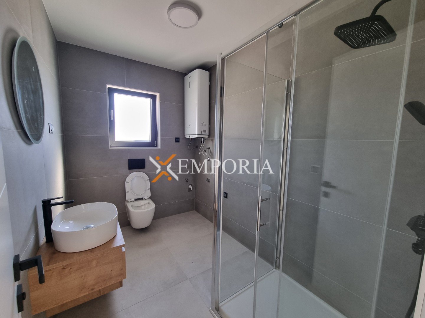 Das Gebäude wird mit Thermoblockziegeln gebaut. Die Wärmedämmung der Fassade besteht aus 8 cm Styropor. Die Bodenbeläge sind Laminat und Fliesen. Die Fenster bestehen aus PVC-Material mit Dreifachverglasung, Rollläden und Moskitonetzen. Die gesamte Wohnung wird mit einer elektrischen Fußbodenheizung ausgestattet sein. Zusätzlich werden im Wohnzimmer und in den Schlafzimmern Klimaanlagen installiert. Weiters ist die Eingangstür der Wohnung einbruch- und feuersicher.