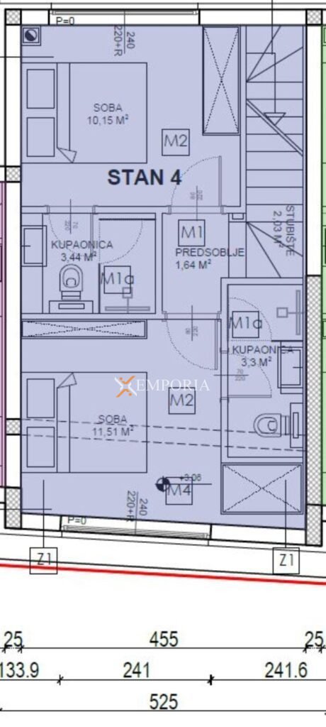 Zum Verkauf steht eine zweistöckige Wohnung im Ort Sveti Petar na Moru. Es handelt sich um einen modernen Neubau, der nur 250 m vom Meer entfernt ist. Die Wohnung bietet einen Meerblick.