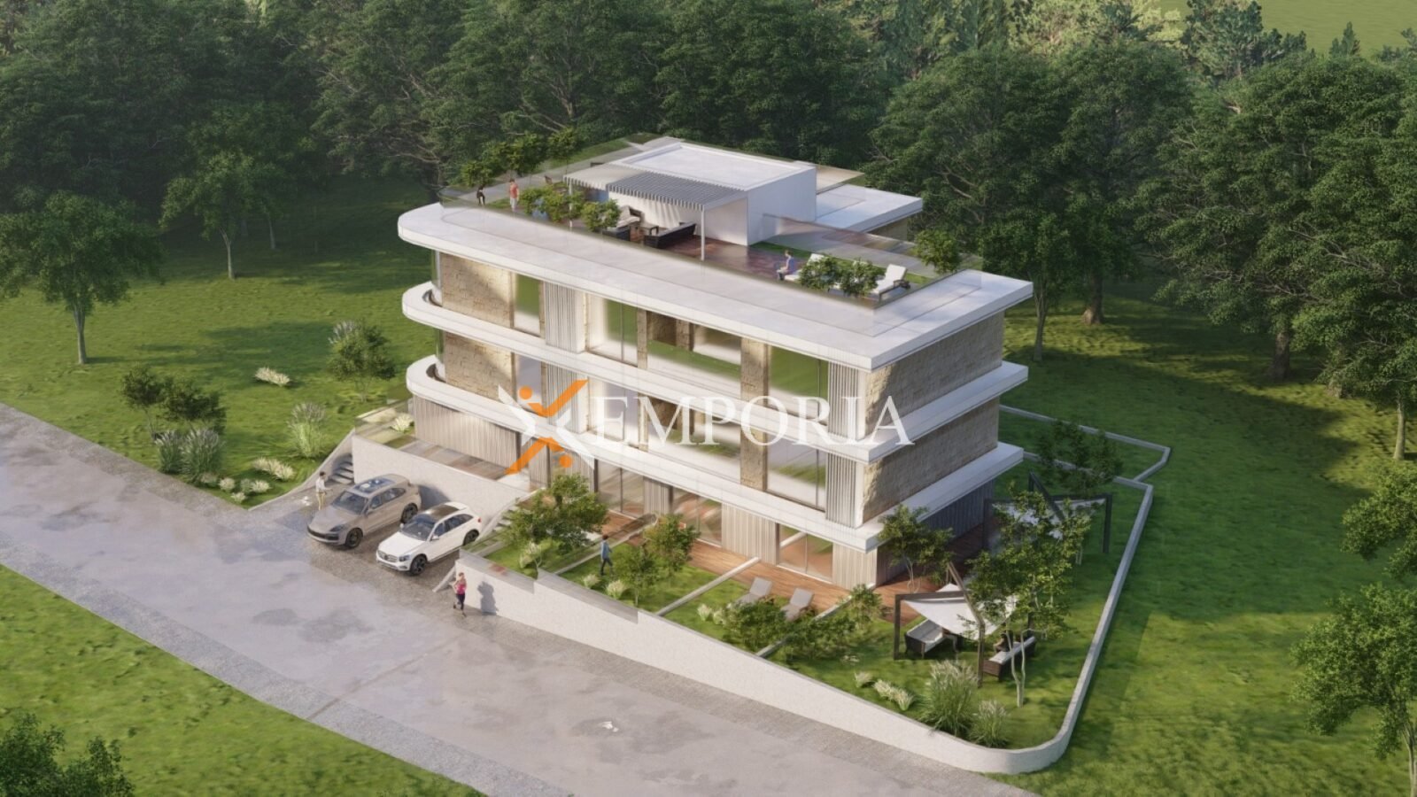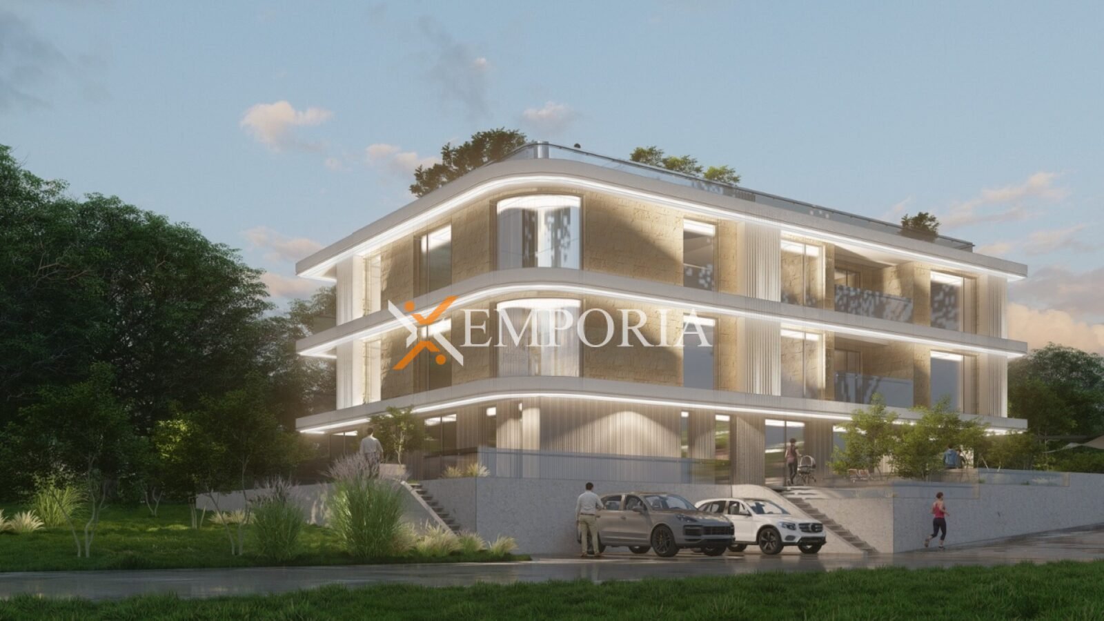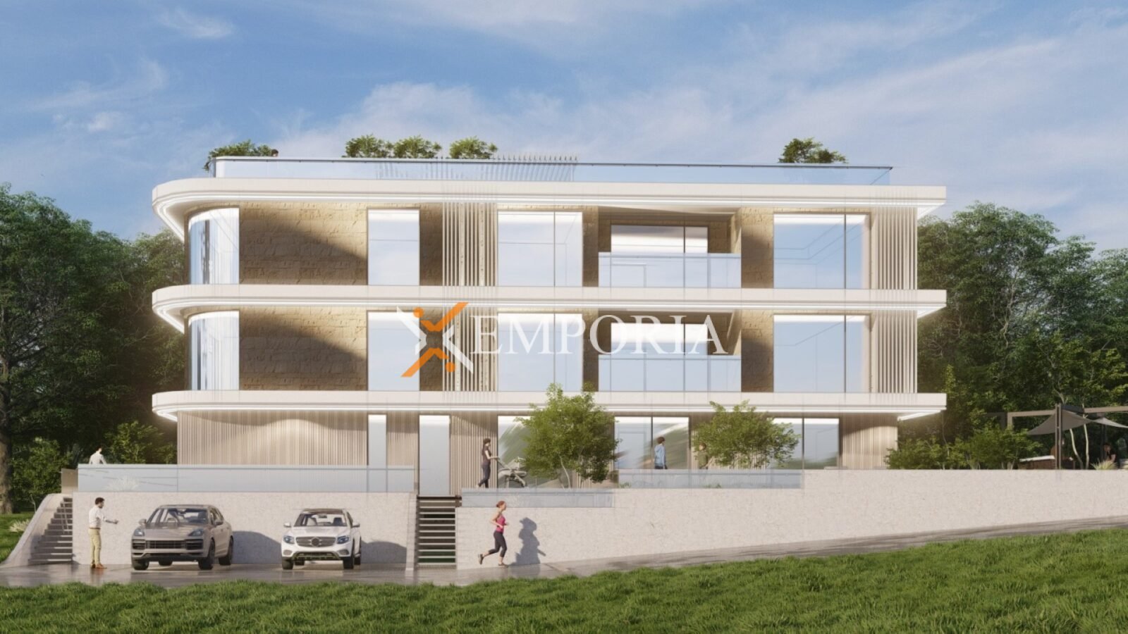 Das Gebäude wird mit Thermoziegelblöcken und Betonwänden gebaut. Die Wärmedämmung der Fassade beträgt 10 cm Styropor. Die Fenster sind aus Aluminium mit dreischichtigem Glas, Rollläden und Moskitonetzen. Die Bodenbeläge bestehen aus Fliesen und Parkett. In Wohnzimmer und Schlafzimmern werden Klimaanlagen installiert. Zusätzlich wird in den Badezimmern elektrische Fußbodenheizung installiert.
