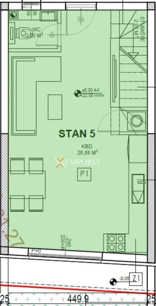 Zum Verkauf steht eine zweistöckige Wohnung im Ort Sveti Petar na Moru. Es handelt sich um einen modernen Neubau, der nur 250 m vom Meer entfernt ist. Die Wohnung bietet einen Meerblick.