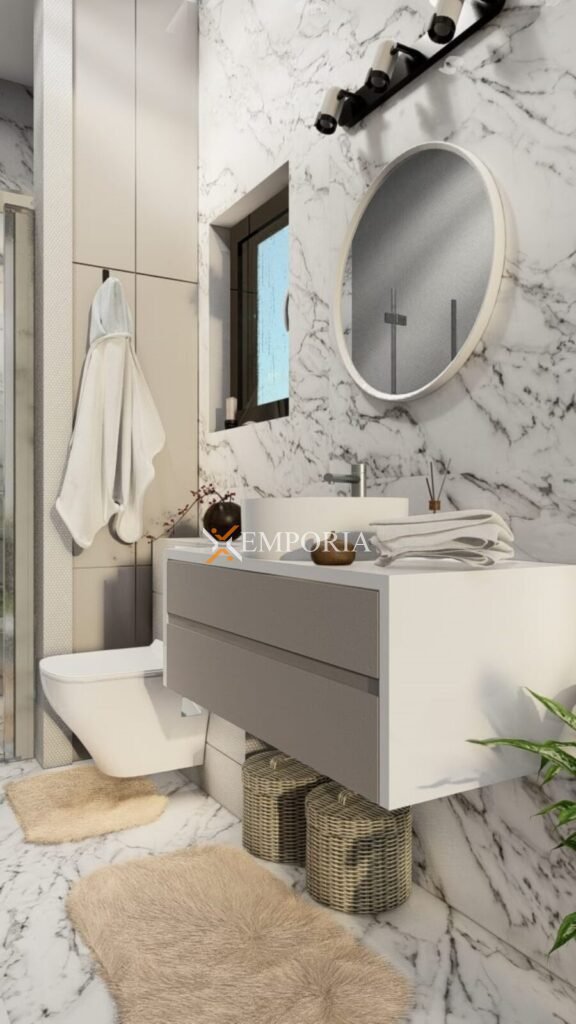 Das Gebäude wird aus wärmeisolierendem Ziegelmauerwerk errichtet und mit einer 10 cm starken Styropor-Fassade isoliert. Die Fenster bestehen aus PVC mit Dreifachverglasung, elektrischen Rollläden und Insektenschutzgittern. Die Böden bestehen aus Fliesen und Laminat in den Schlafzimmern. Die Eingangstür ist einbruchhemmend und feuerfest.