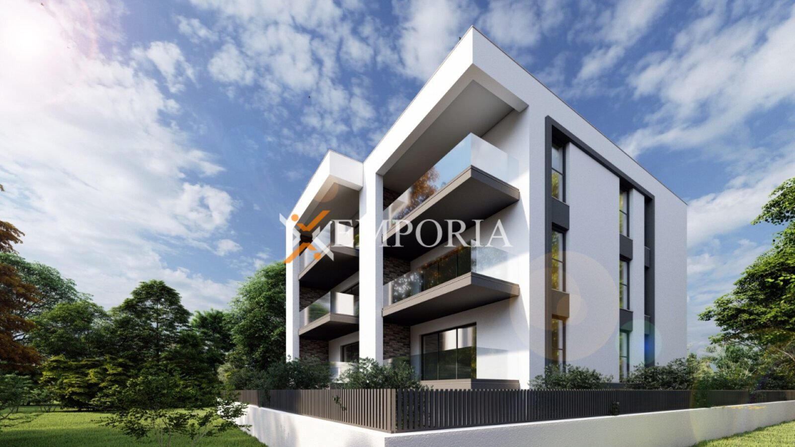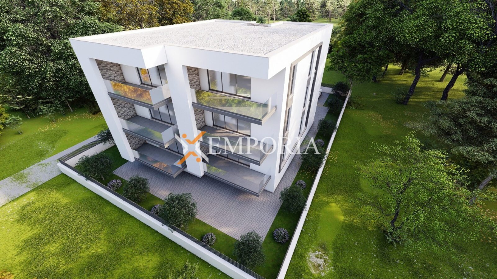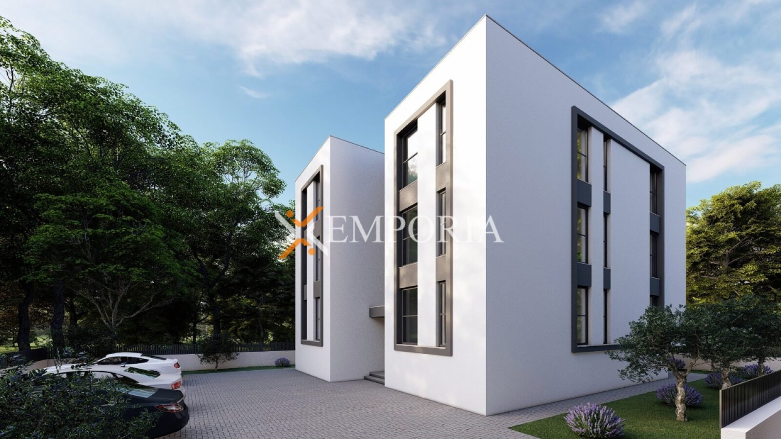 Zum Verkauf steht eine moderne Wohnung in einem Neubau in Rovanjska, nur 120 m vom Meer und 800 m vom Ortszentrum entfernt. Die gesamte Nettofläche beträgt 70,68 m² und umfasst eine überdachte Terrasse sowie einen eigenen Parkplatz. Die Immobilie bietet einen hervorragenden Meerblick und befindet sich in einem modernen Gebäude mit flachem Betondach.