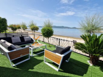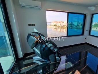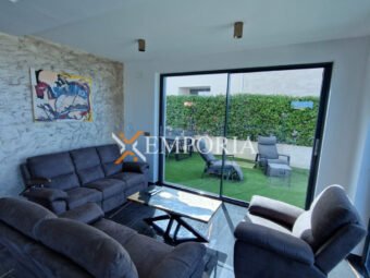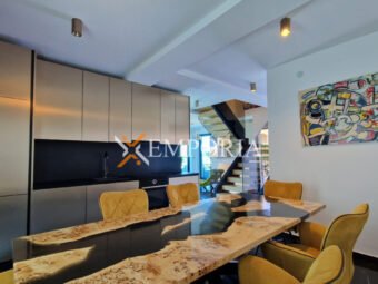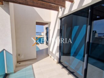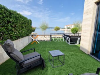 Zum Verkauf steht ein modernes, vollständig möbliertes Apartment in einem Neubau in erster Meeresreihe in Sukošan. Die gesamte Nettofläche inklusive Zubehör beträgt 169,98 m². Besonders hervorzuheben ist der private Garten mit 110 m² Fläche. Die Immobilie liegt nur 15 m vom Meer und 900 m vom Ortszentrum entfernt.