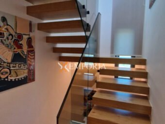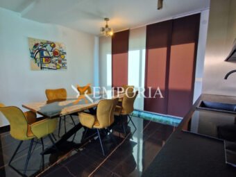 Die Wohnung verfügt über eine Fußbodenheizung im gesamten Bereich mittels Wärmepumpe sowie über fünf Klimaanlagen (Wohnzimmer + Schlafzimmer). Die Fenster sind aus Aluminium, in den Schlafzimmern gibt es Vorhänge, und die Böden sind mit Fliesen und Parkett ausgestattet. Ein Kamin ist vorhanden, die Fassade ist mit 10 cm Styropor isoliert, und das Gebäude hat ein neues, flaches Betondach.