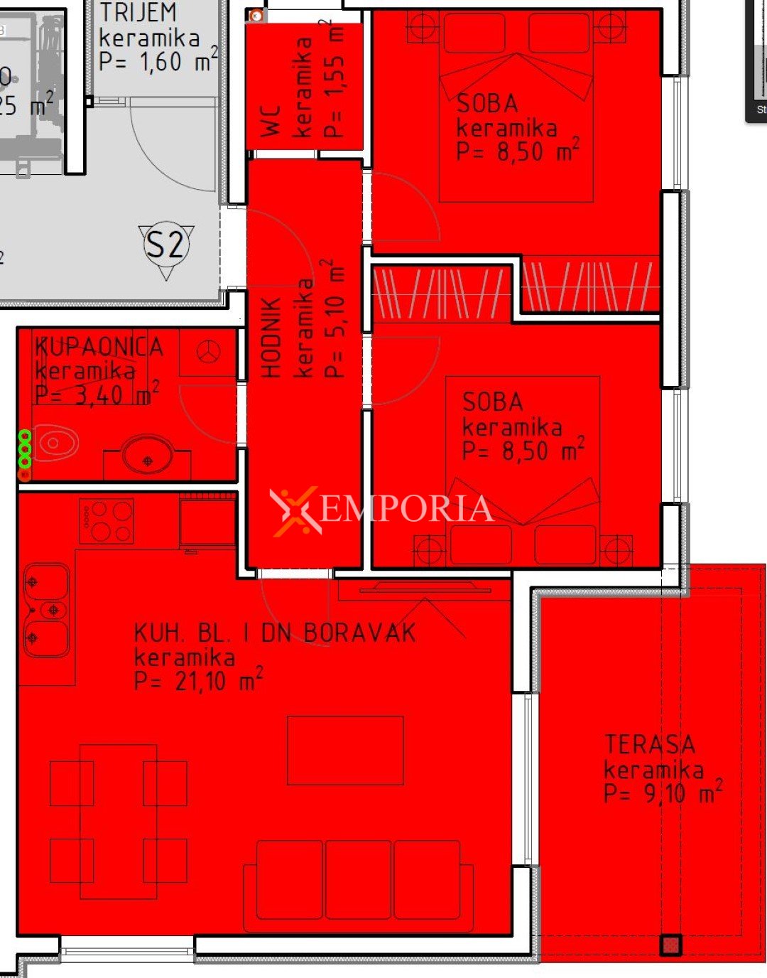 Im Gebäude stehen außerdem folgende Apartments zum Verkauf: A1555, A1557 und A1558.