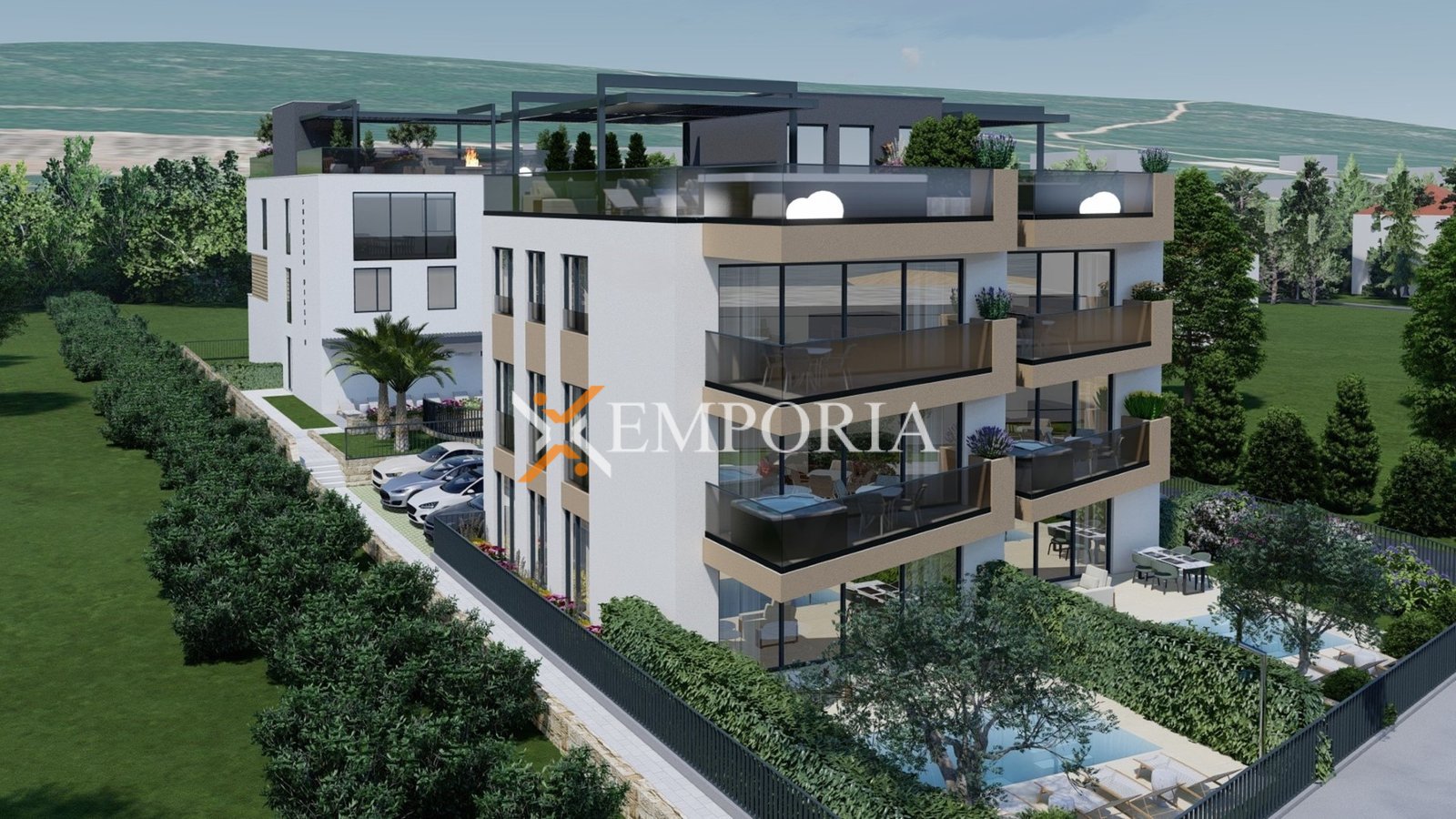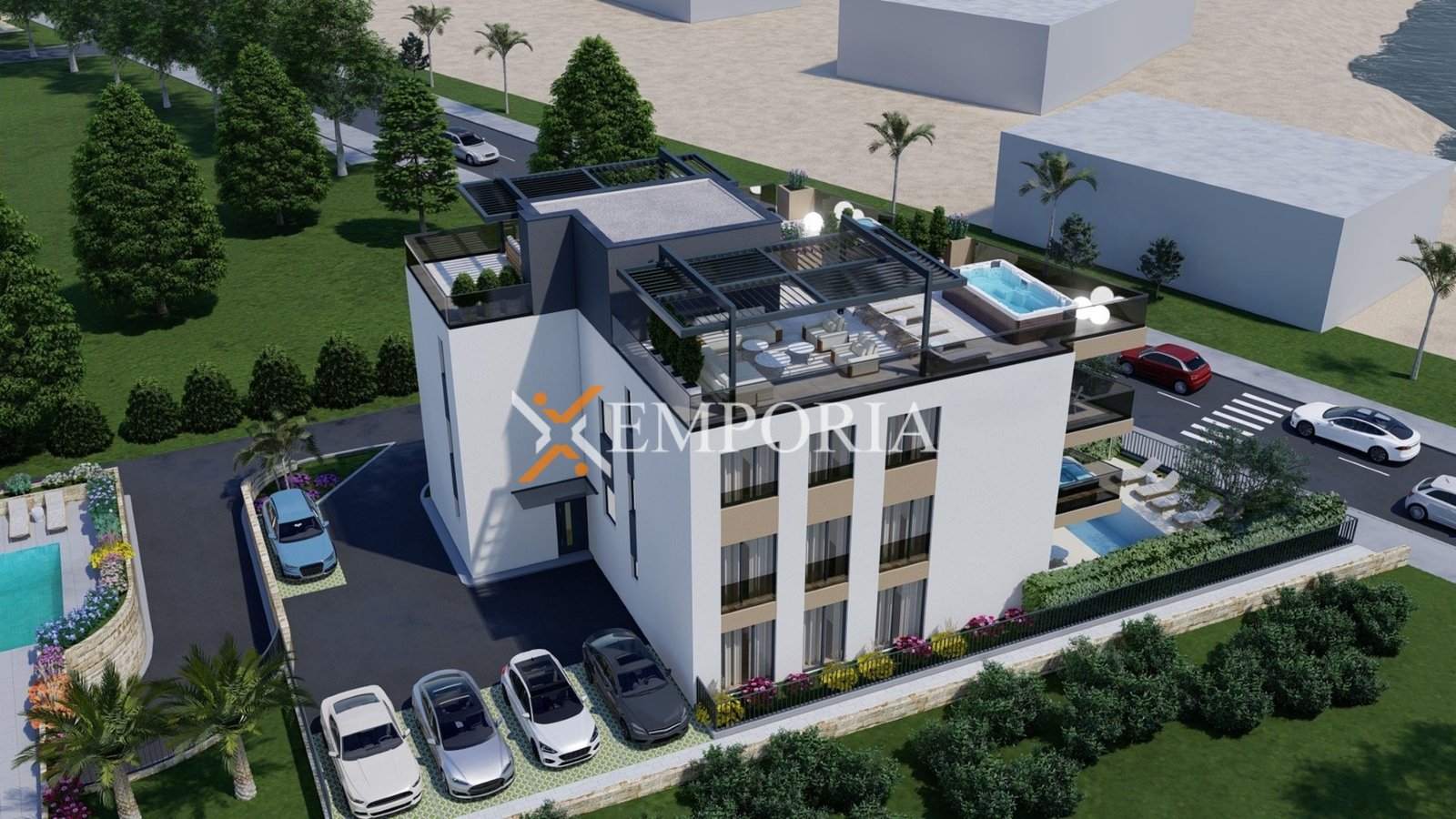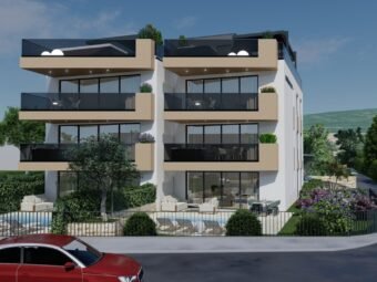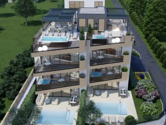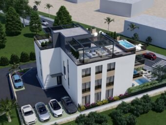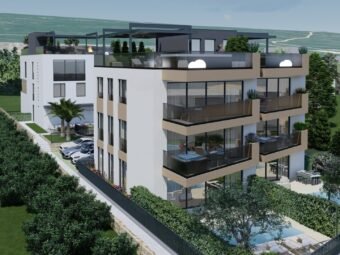 Zum Verkauf steht eine moderne Neubauwohnung in Sukošan mit schönem Meerblick. Die Immobilie befindet sich im ersten Stock eines hochwertig gebauten Wohngebäudes, nur 40 m vom Meer entfernt, während das Ortszentrum 1,8 km entfernt liegt.