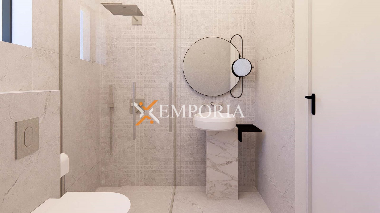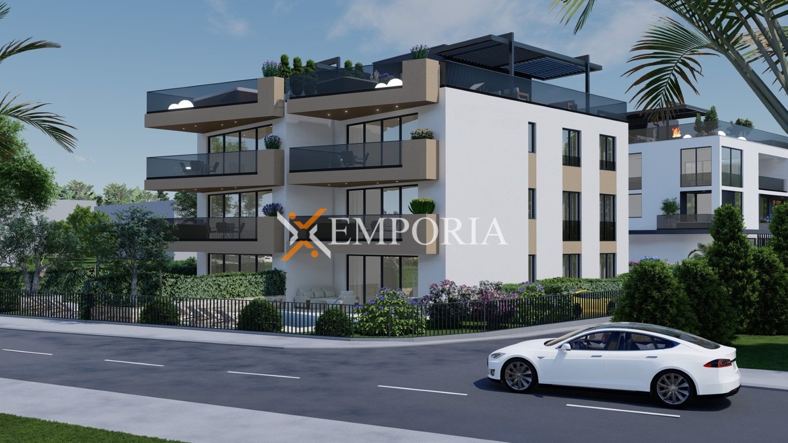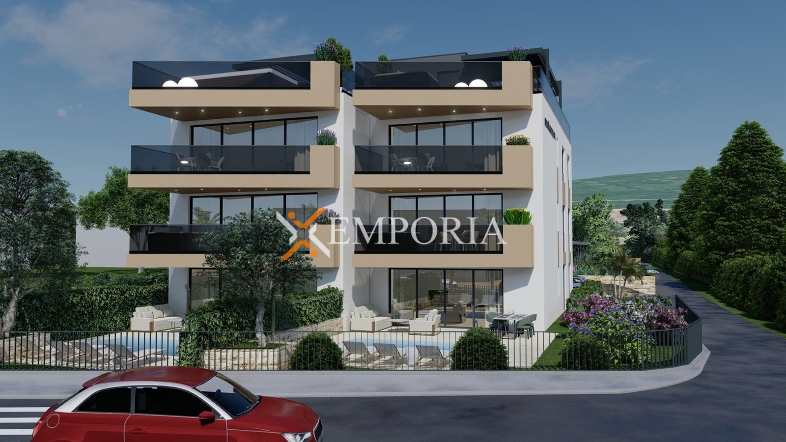 Zum Verkauf steht eine moderne Neubauwohnung in Sukošan mit schönem Meerblick. Die Immobilie befindet sich im ersten Stock eines hochwertig gebauten Wohngebäudes, nur 40 m vom Meer entfernt, während das Ortszentrum 1,8 km entfernt liegt.