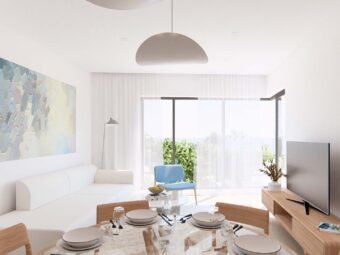 Die Badezimmer sind mit elektrischer Fußbodenheizung ausgestattet, während im Wohnbereich und in allen Schlafzimmern Klimageräte installiert sind, insgesamt vier Einheiten. Das Gebäude ist aus Stahlbeton und Ziegel-Thermoblock gebaut, während die Fassade mit 10 cm Steinwolle gedämmt ist. Eingebaut sind PVC-Fenster mit Dreifachverglasung, elektrischen Rollläden und Insektenschutzgittern. Die Böden sind mit Fliesen belegt, die Eingangstür ist einbruchhemmend und feuerfest. Das Dach ist neu, flach und aus Stahlbeton gefertigt.