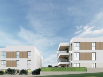 Die Raumaufteilung umfasst einen Flur, zwei Schlafzimmer, ein Badezimmer, ein separates WC, eine Küche mit Essbereich und Wohnzimmer im offenen Konzept, einen Hauswirtschaftsraum, einen Abstellraum sowie eine Loggia. Die Nettofläche dieser Räume beträgt 87,77 m2. Über das Treppenhaus gelangt man auf die private Dachterrasse mit einer Fläche von 95 m2, davon sind 5,06 m2 überdacht, was zusätzlichen Raum zum Entspannen mit Panoramablick auf das Meer bietet.