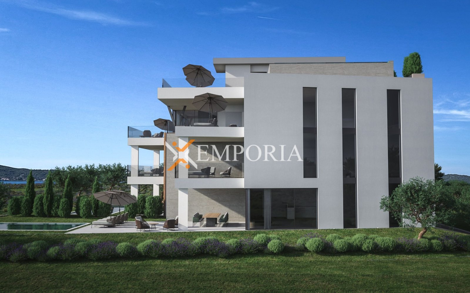 Zum Verkauf steht ein exklusives Penthouse in einem Neubauprojekt in Sukošan, in erster Reihe zum Meer, nur 20 m von der Küste und 1,1 km vom Ortszentrum entfernt. Diese außergewöhnliche Immobilie verfügt über einen privaten Aufzug mit direktem Zugang zur Wohnung und bietet einen hervorragenden offenen Meerblick. Sie stellt eine einzigartige Gelegenheit für luxuriöses Wohnen oder eine prestigeträchtige Investition in einer der begehrtesten Küstenlagen dar.