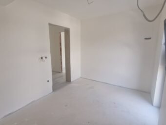 PVC-Fenster mit Dreifachverglasung sorgen für hervorragende Wärme- und Schalldämmung. An den Glasflächen sind elektrische Rollläden montiert, an den übrigen Fenstern befinden sich Rollläden und Insektenschutzgitter. Die Eingangstür ist einbruchhemmend und feuerbeständig, und das Dach ist neu, flach und aus Beton gefertigt. Die Böden sind mit Fliesen und Laminat ausgestattet, was den modernen Charakter zusätzlich unterstreicht.