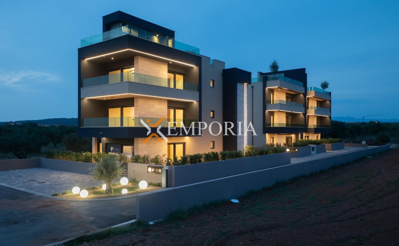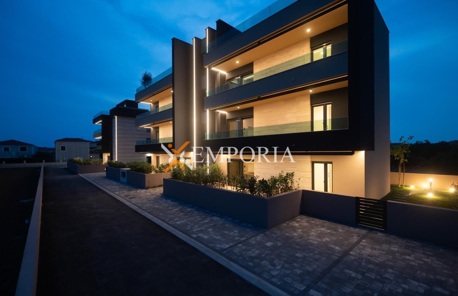 Zum Verkauf steht eine luxuriöse Wohnung in einem Neubau in Sukošan, nur 280 m vom Meer und 900 m vom Ortszentrum entfernt. Die Wohnung befindet sich im ersten Stock eines modernen Gebäudes mit Aufzug und bietet einen teilweisen Meerblick, was die Attraktivität dieser Immobilie zusätzlich steigert.