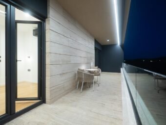 Das Gebäude wurde mit Ziegel-Thermoblock errichtet und besitzt eine 10 cm starke Styropor-Fassadendämmung. PVC-Fenster mit Dreifachverglasung, elektrischen Rollläden und Insektenschutzgittern bieten zusätzlichen Wärme- und Schallschutz. Die Eingangstür ist einbruchhemmend und feuerbeständig, während das Flachdach aus Beton die moderne Architektursprache unterstreicht.