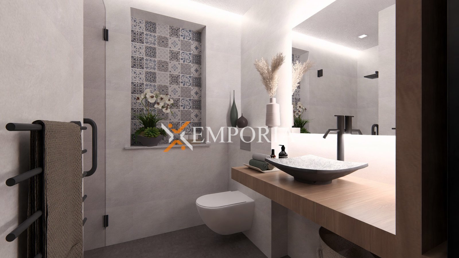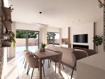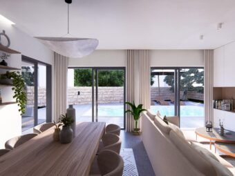 Das Gebäude wird aus hochwertigen Ziegel-Thermoblöcken errichtet, während die Fassade mit 10 cm Styropor isoliert ist. Es sind Aluminiumfenster mit Dreifachverglasung, elektrischen Rollläden und Insektenschutzgittern eingebaut. Die Bodenbeläge bestehen aus Fliesen und Parkett, während die Eingangstür einbruchhemmend und feuerbeständig ist. Die Küche ist im Preis inbegriffen, was den Einzug zusätzlich erleichtert.