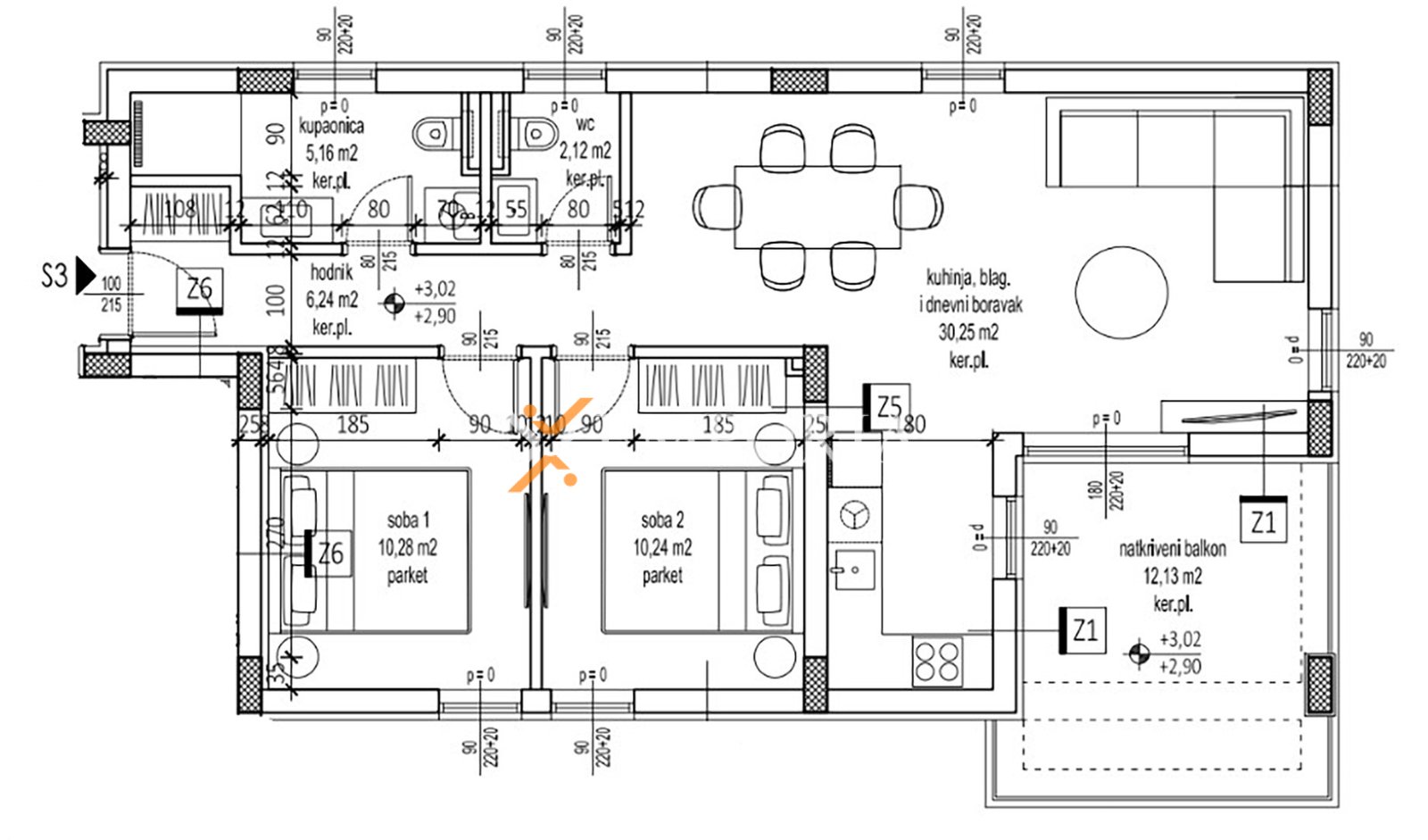 Das Gebäude wird aus Ziegel-Thermoblöcken errichtet, während die Fassade mit 10 cm Styropor isoliert ist. Es sind Aluminiumfenster mit Dreifachverglasung, elektrischen Rollläden und Insektenschutzgittern eingebaut. Die Bodenbeläge bestehen aus Fliesen und Parkett, während die Eingangstür einbruchhemmend und feuerbeständig ist. Die Küche ist im Preis inbegriffen, was den Einzug erleichtert.