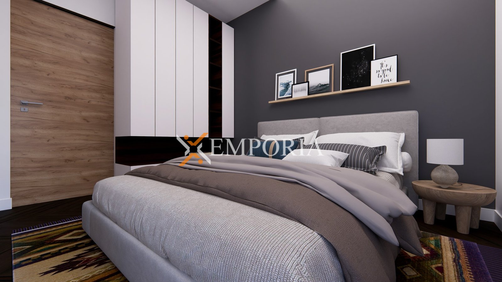 Die Raumaufteilung umfasst einen Flur, vier Schlafzimmer, zwei Badezimmer, ein Spielzimmer, eine Küche mit Essbereich und Wohnzimmer sowie zwei überdachte Terrassen. Die Nettonutzfläche der Innenräume beträgt 142,05 m2. Zusätzlich verfügt die Wohnung über eine Dachterrasse mit einer Fläche von 79,45 m2. Die gesamte Nettonutzfläche der beschriebenen Räume beträgt 161,91 m2, während die gesamte Nettonutzfläche mit Nebenflächen 171,55 m2 beträgt.
