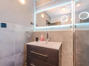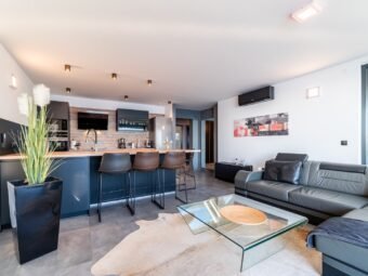 Elektrische Fußbodenheizung ist in der gesamten Wohnung installiert. Es sind drei Klimaanlagen im Wohnbereich und in den Schlafzimmern vorhanden. Das Gebäude wurde mit Thermoziegeln und Betonwänden errichtet.