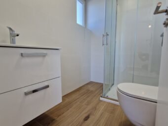 Es ist eine Kombination aus PVC- und Aluminiumfenstern mit Rollläden, elektrischen Rollläden, Insektenschutzgittern und Dreifachverglasung verbaut. Die Fassade ist mit 10 cm Styropor gedämmt. Die Böden sind mit Fliesen ausgelegt.