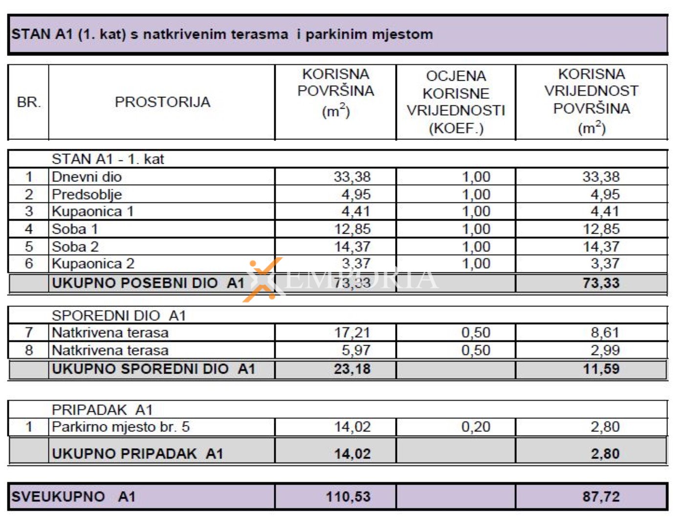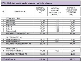 Die Nettonutzfläche beträgt 84,92 m², die gesamte Nettonutzfläche mit Nebenflächen beträgt 87,72 m².
