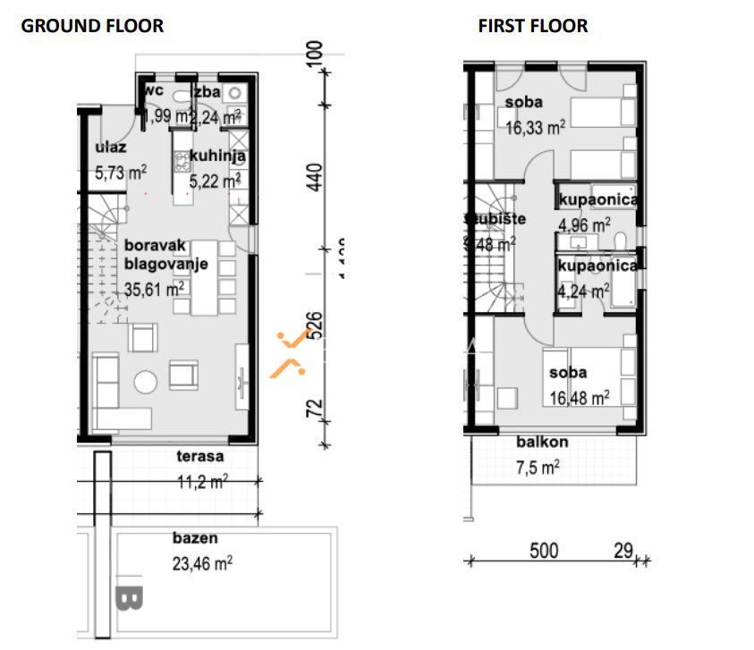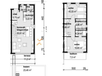 Mehrstöckige Wohnung mit Meerblick zum Verkauf in Privlaka. Diese besteht aus Erdgeschoss, 1. Stock, 2. Stock und Dachterrasse. Diese Art von Wohnung kann mit einem Reihenhaus verglichen werden. Es ist nur 65 m vom Meer entfernt.