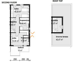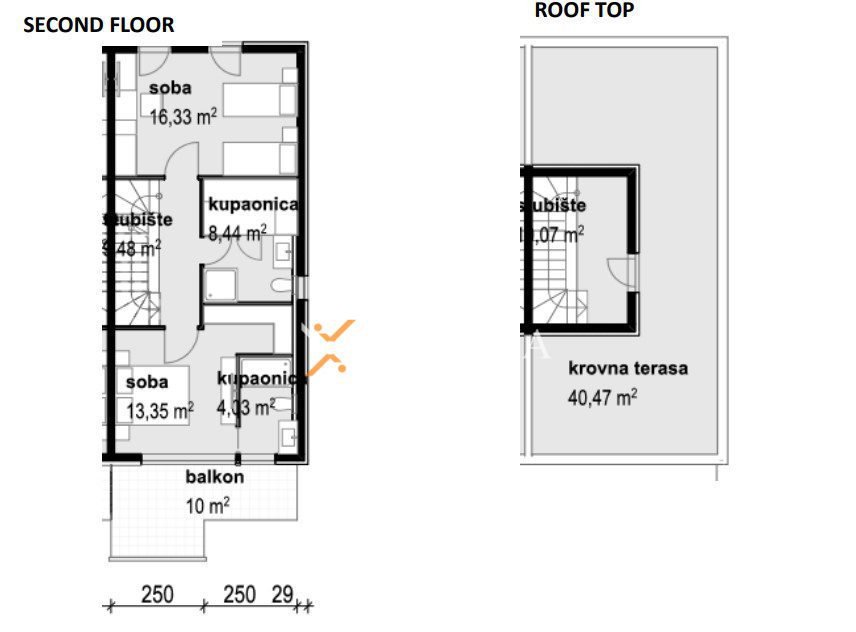 Darüber hinaus führt eine Innentreppe zur Dachterrasse von 40,47 m2