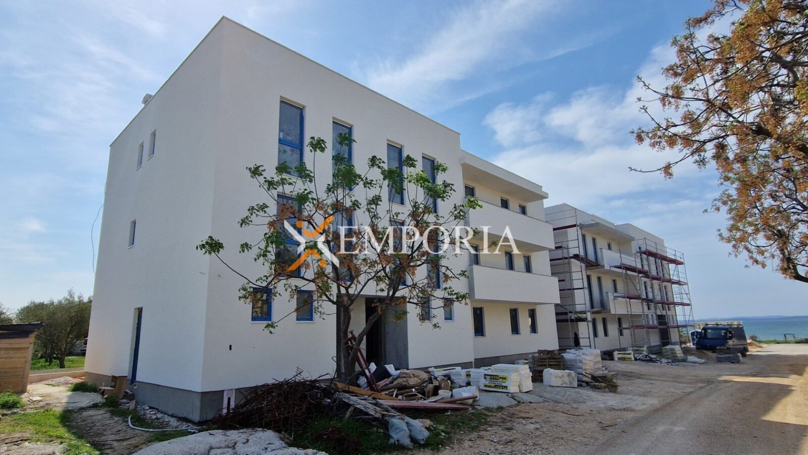 Das Gebäude ist im Bau, die Fertigstellung ist für Sommer 2025 geplant. Insgesamt 5 Wohneinheiten im Gebäude. Konstruktion mit Betonwand. Wärmedämmung der Fassade 10 cm Styropor.