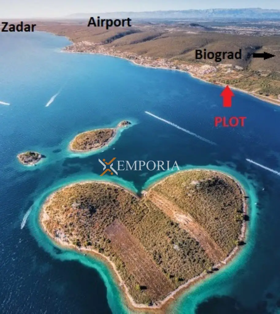 Grundstück ist nur 20 km von Zadar und dem Flughafen in Zemunik entfernt. Es befindet sich 17 km vom Hafen von Gaženica, 10 km von Marina Dalmacija und 13 km von der Autobahn entfernt. Biograd, die Stadt und der Hafen, liegt 9 km südlich von diesem Grundstück, auf einer kleinen Halbinsel und dem Festland. Der kleine malerische Ort von Sveti Filip i Jakov liegt an der Küste des Pasman-Meeres, zwischen Zadar und Biograd und ist nur 4 km vom Grundstück entfernt.