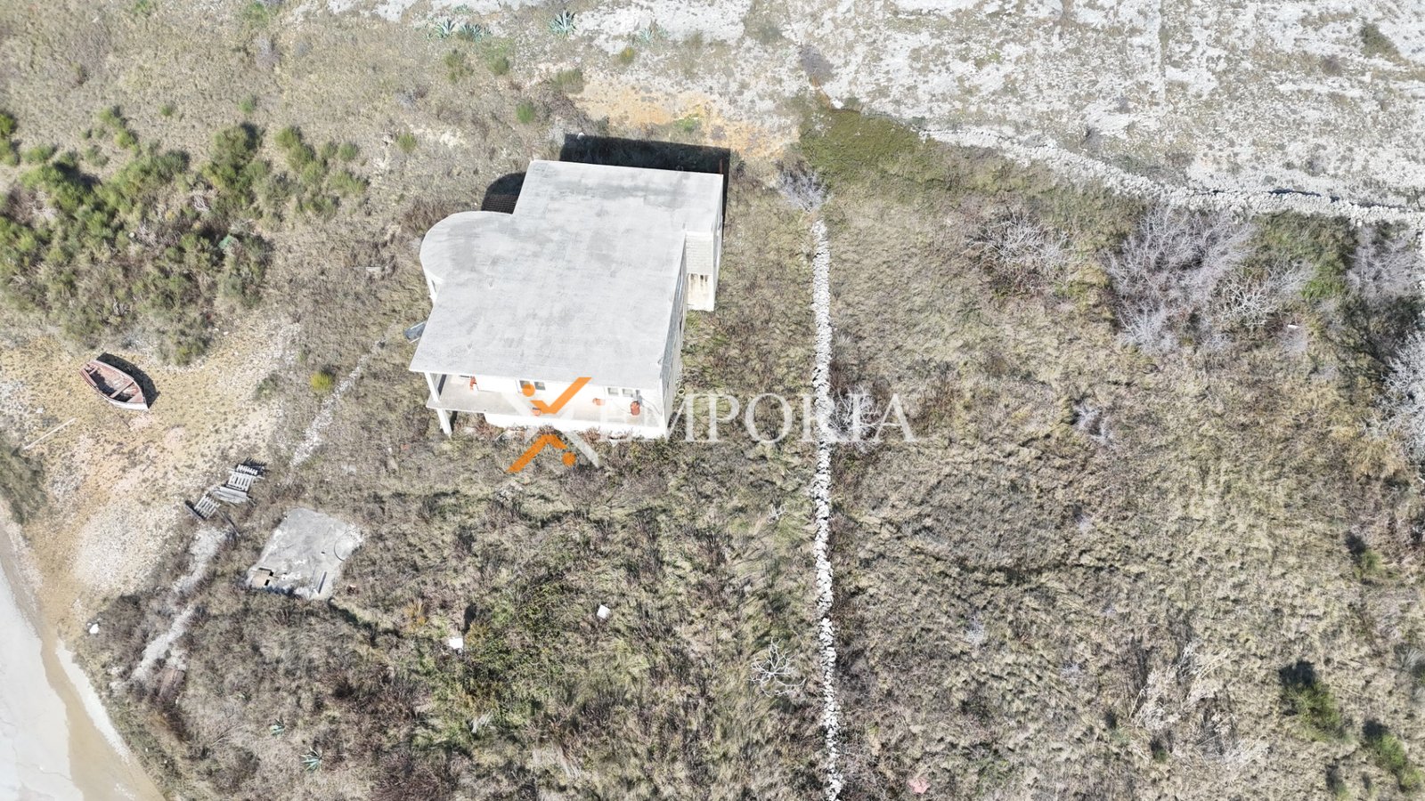 Auf dem Grundstück befindet sich ein bestehendes Objekt im Rohbau, vorgesehen für Renovierung und Aufstockung um ein weiteres Geschoss, wodurch das Projekt eines Hauses mit einer Gesamtfläche von 420 m2 realisiert wird. Ein Vor- und Hauptprojekt wurde erstellt, und eine rechtskräftige Baugenehmigung liegt vor. Die Kommunal- und Wasserbeiträge sind vollständig bezahlt, sodass die Bauarbeiten ohne zusätzliche administrative Verfahren fortgesetzt werden können.