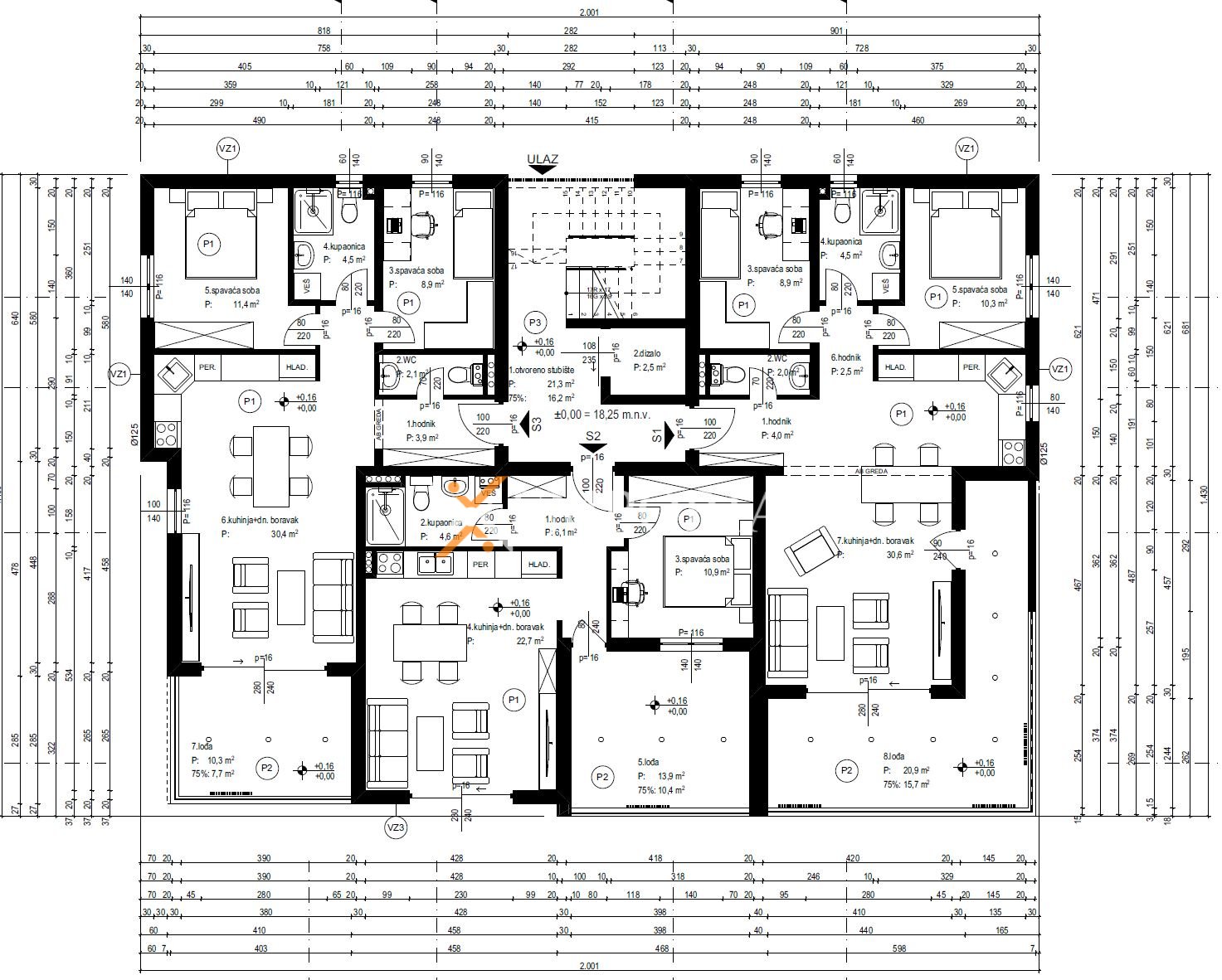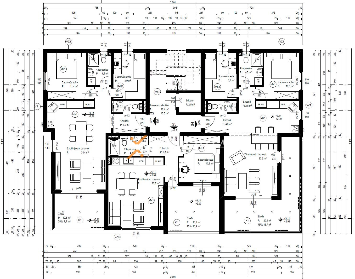 Für jedes Grundstück liegt ein Hauptprojekt für ein Gebäude mit 9 Apartments vor, sodass der Baubeginn zeitnah erfolgen kann. Strom, Wasser und Kanalisation befinden sich in der Straße vor dem Grundstück, wodurch der Anschluss an die Infrastruktur unkompliziert möglich ist.