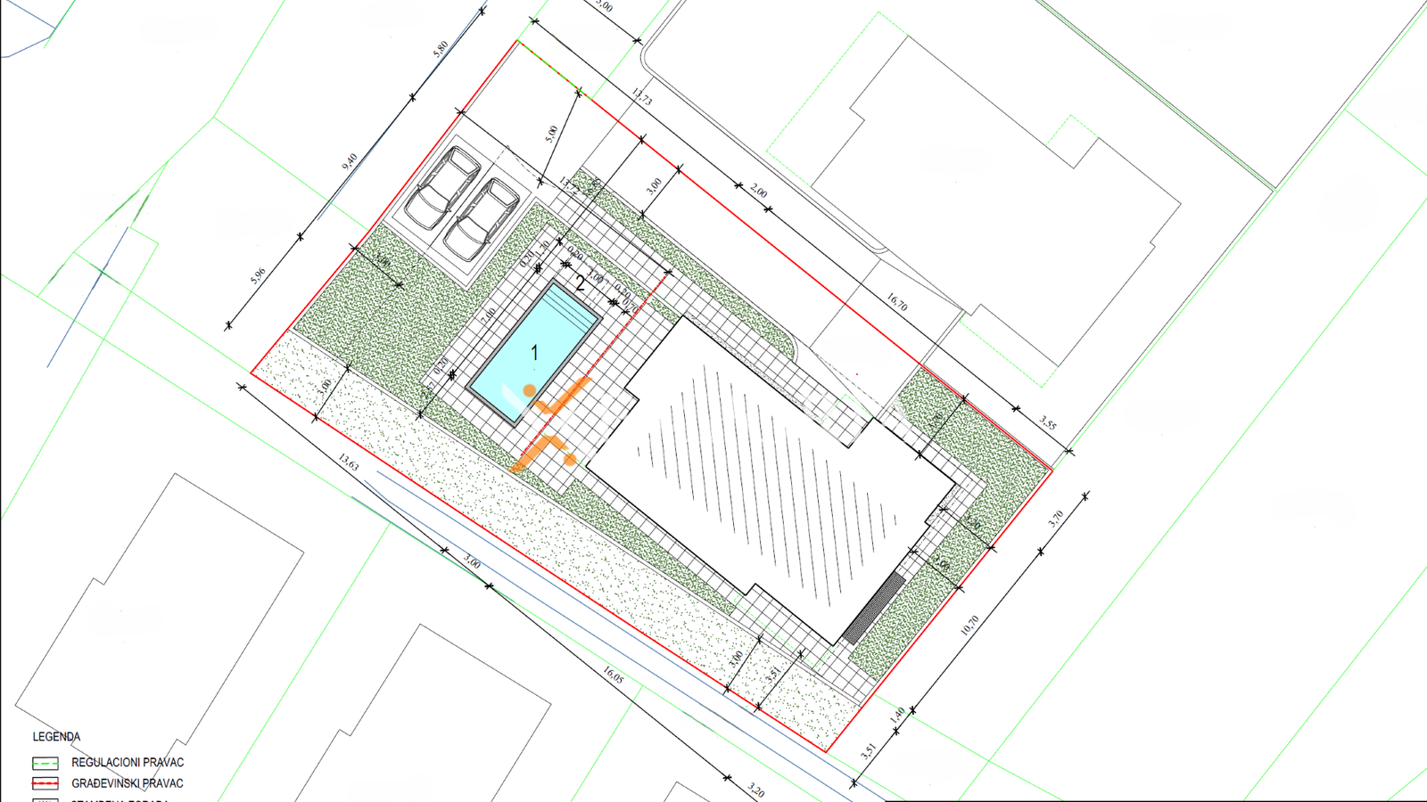 Für das Grundstück besteht ein Hauptprojekt für den Bau eines Wohngebäudes mit vier Wohneinheiten. Zusätzlich besteht die Möglichkeit einer Tiefgarage, gemäß den geltenden Raumordnungsbedingungen. Ein Antrag auf Erteilung der Baugenehmigung wurde eingereicht. Daher stellt diese Immobilie eine ausgezeichnete Gelegenheit für eine Investition oder die Umsetzung eines eigenen Projekts dar.