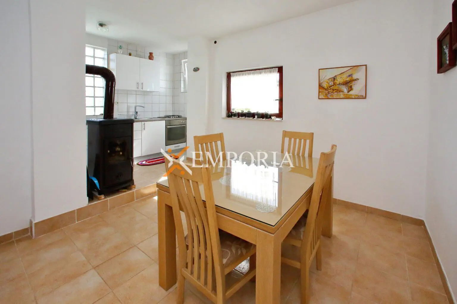Konstruktion mit gemauerten Thermoblöcken. PVC-Fenster mit Rollläden. Schornstein im ersten und zweiten Stock. Fast alle Bodenbeläge im Haus sind Fliesen. Die zweite Etage hat Laminatboden. Holzofen im ersten Stock.