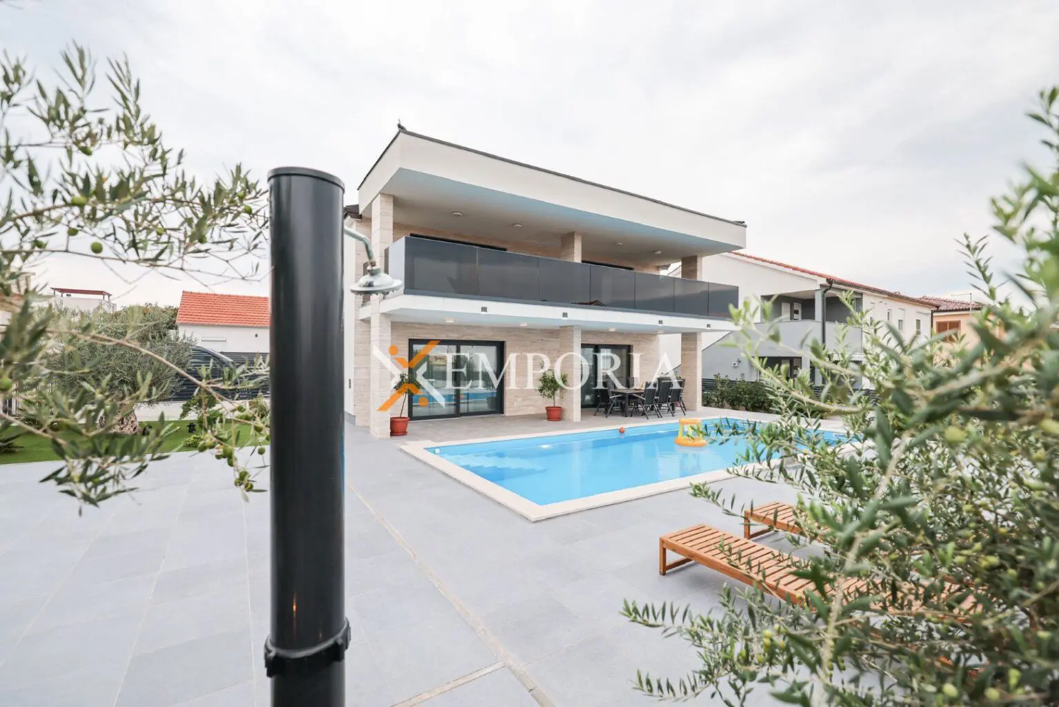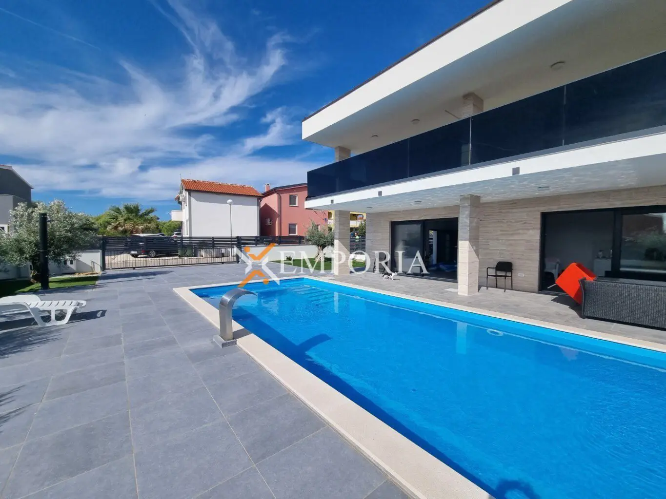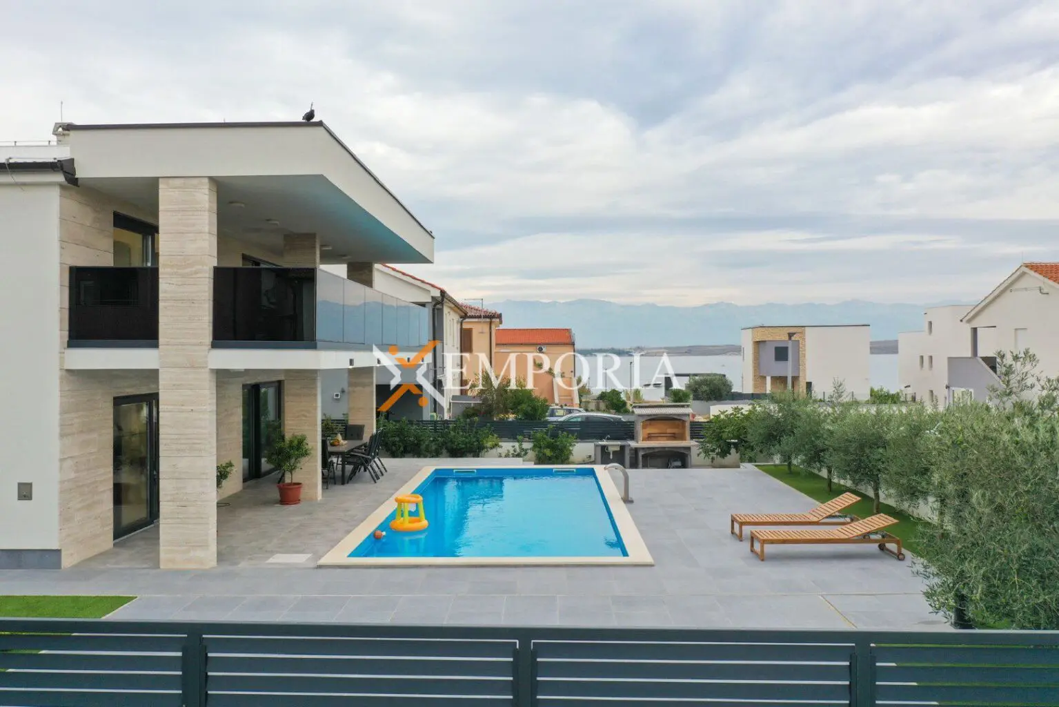 Eine schöne neu gebaute Villa mit Swimmingpool steht nur 120 m vom Meer entfernt zum Verkauf. Sie liegt auf der Insel Vir in der Nähe von wunderschönen Stränden. Das Haus bietet einen sehr schönen Blick auf das Meer.