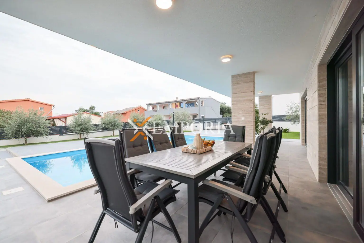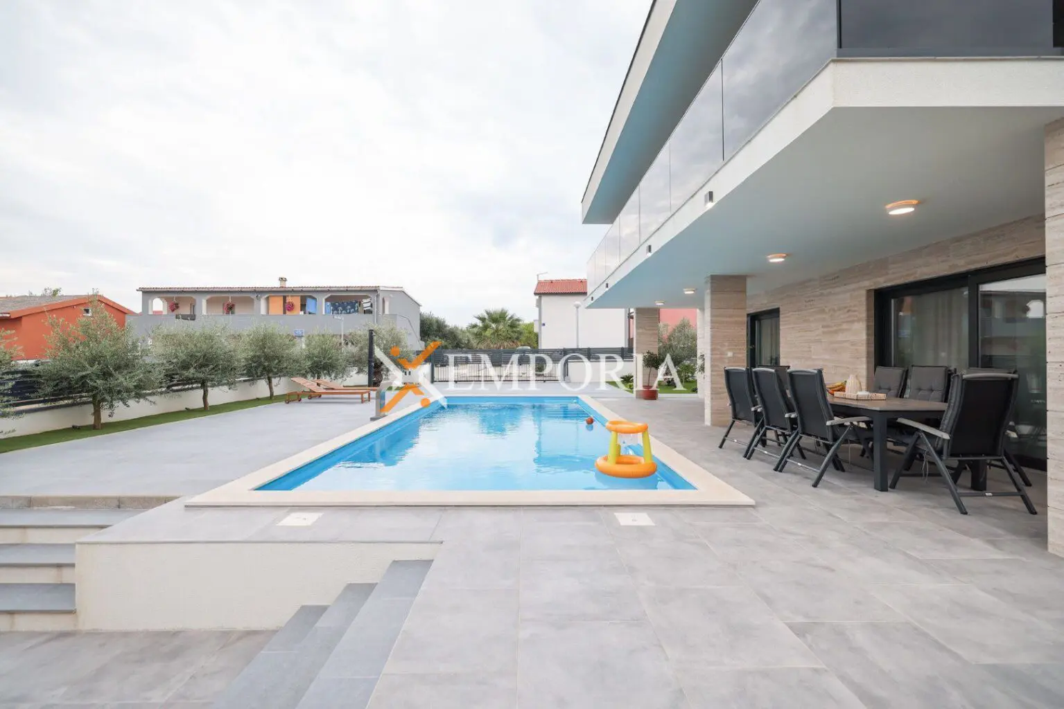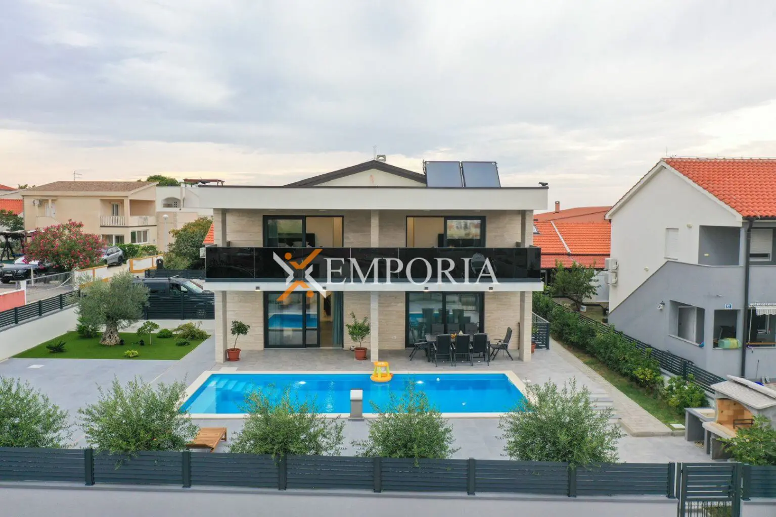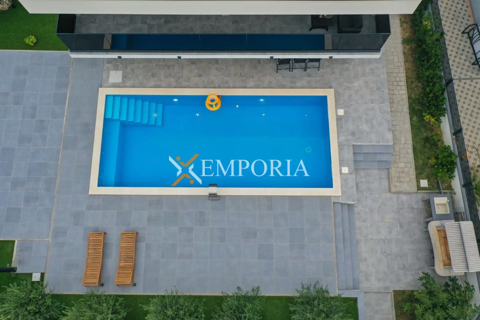 Fläche des Hauses beträgt 257,65 m2. Grundstücksfläche beträgt 553 m2. Insgesamt 5 Parkplätze im Hof. Fläche des Pools beträgt 43 m2.